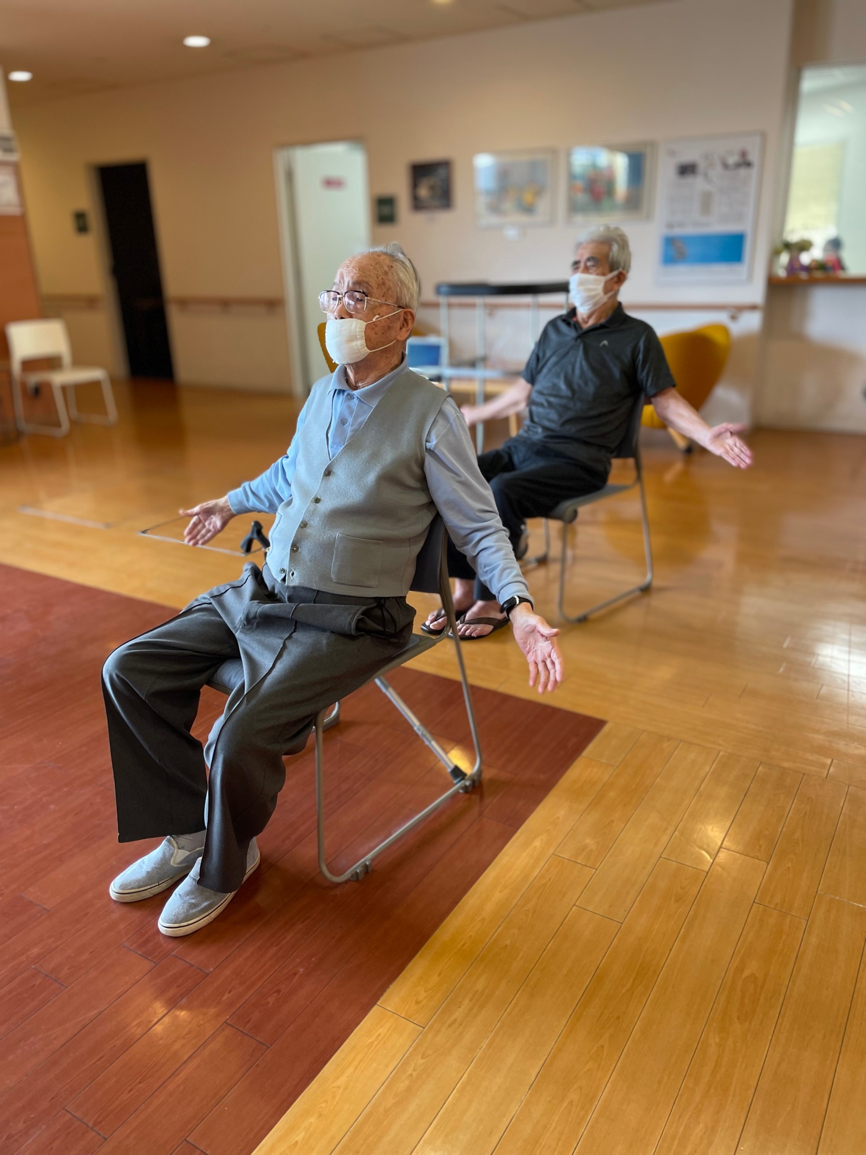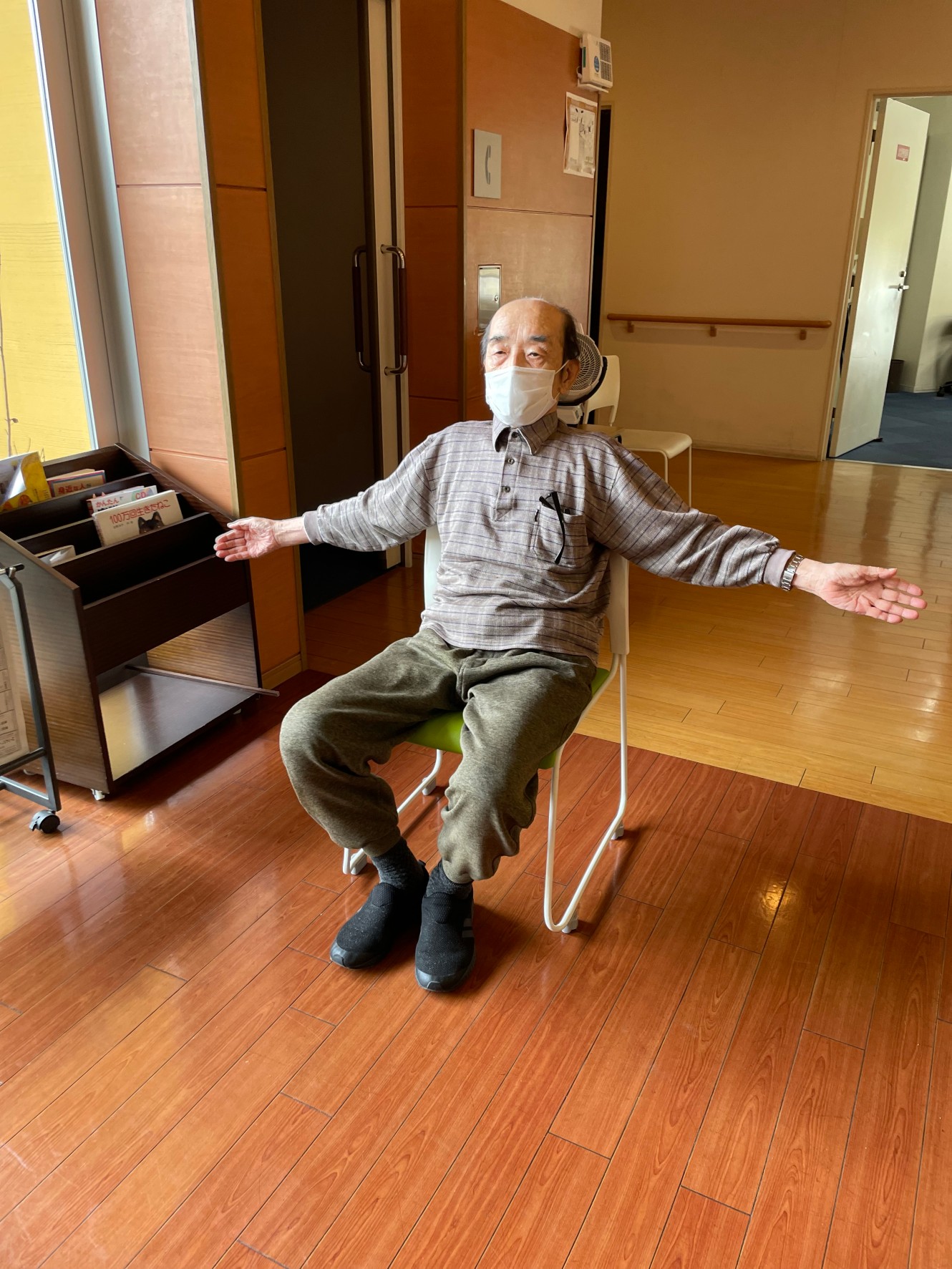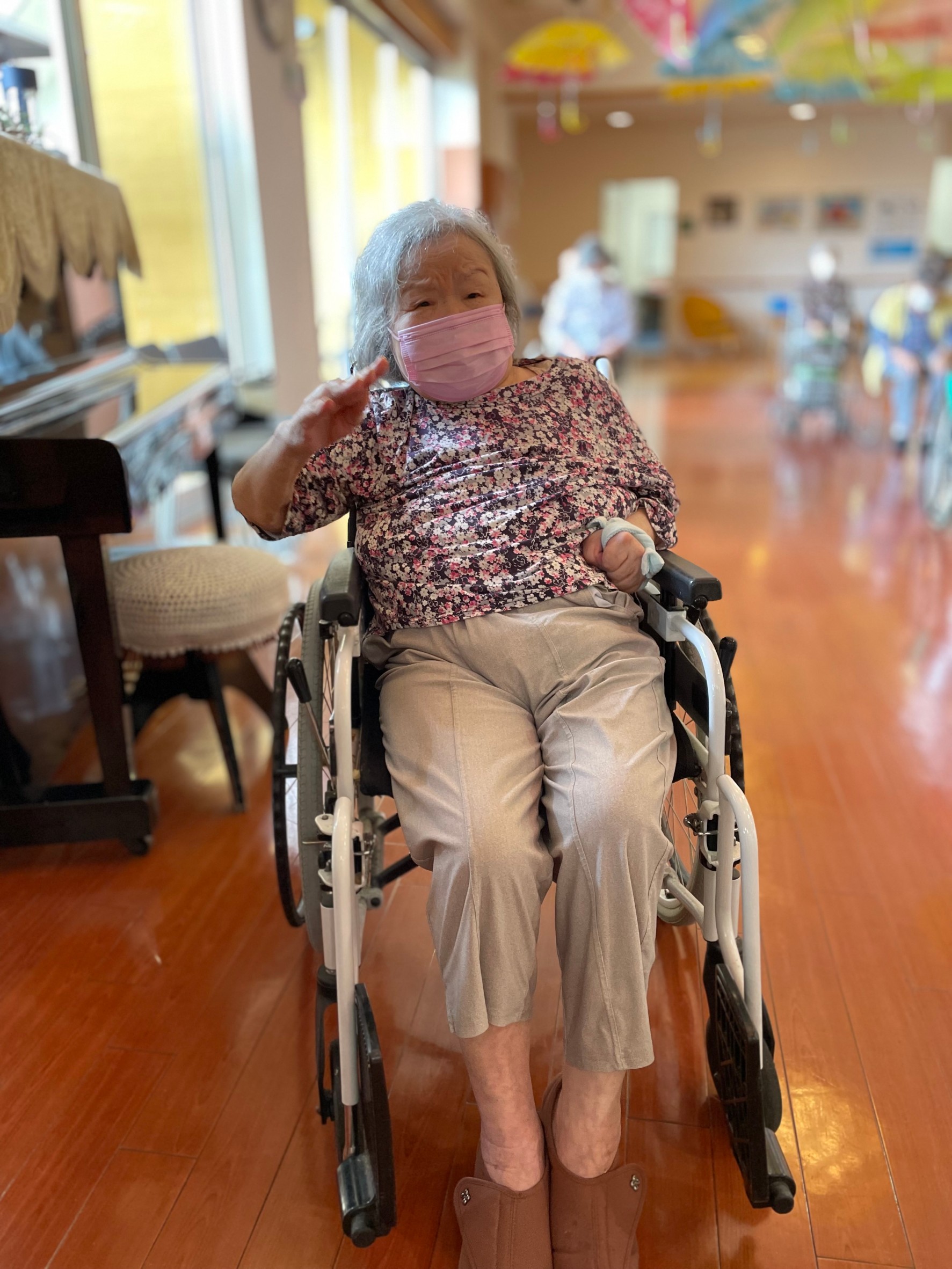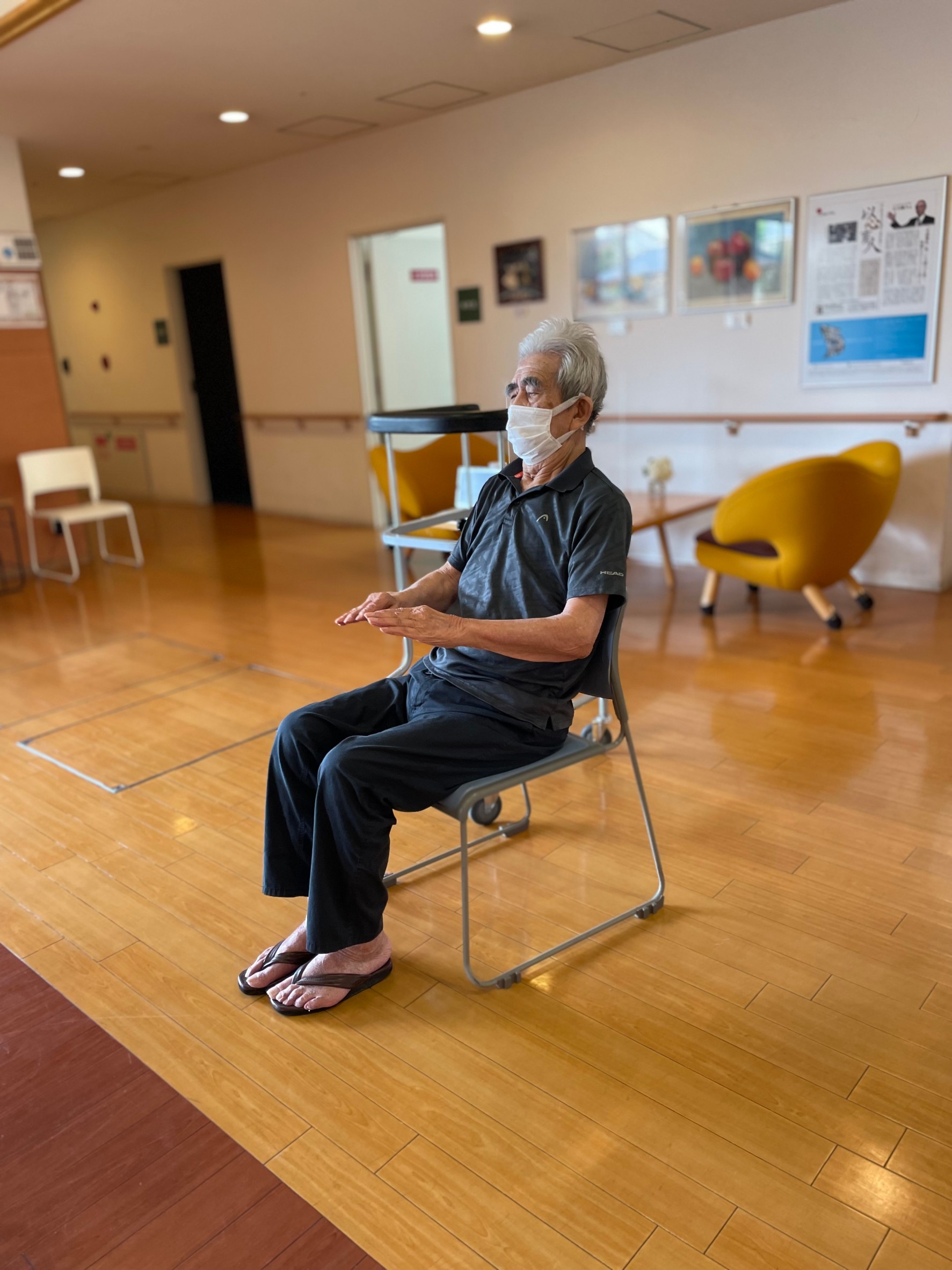 まだそこまで長い距離ではないですが、歩行練習を終えてお席に戻ってきた時のご様子です( ◠‿◠ )