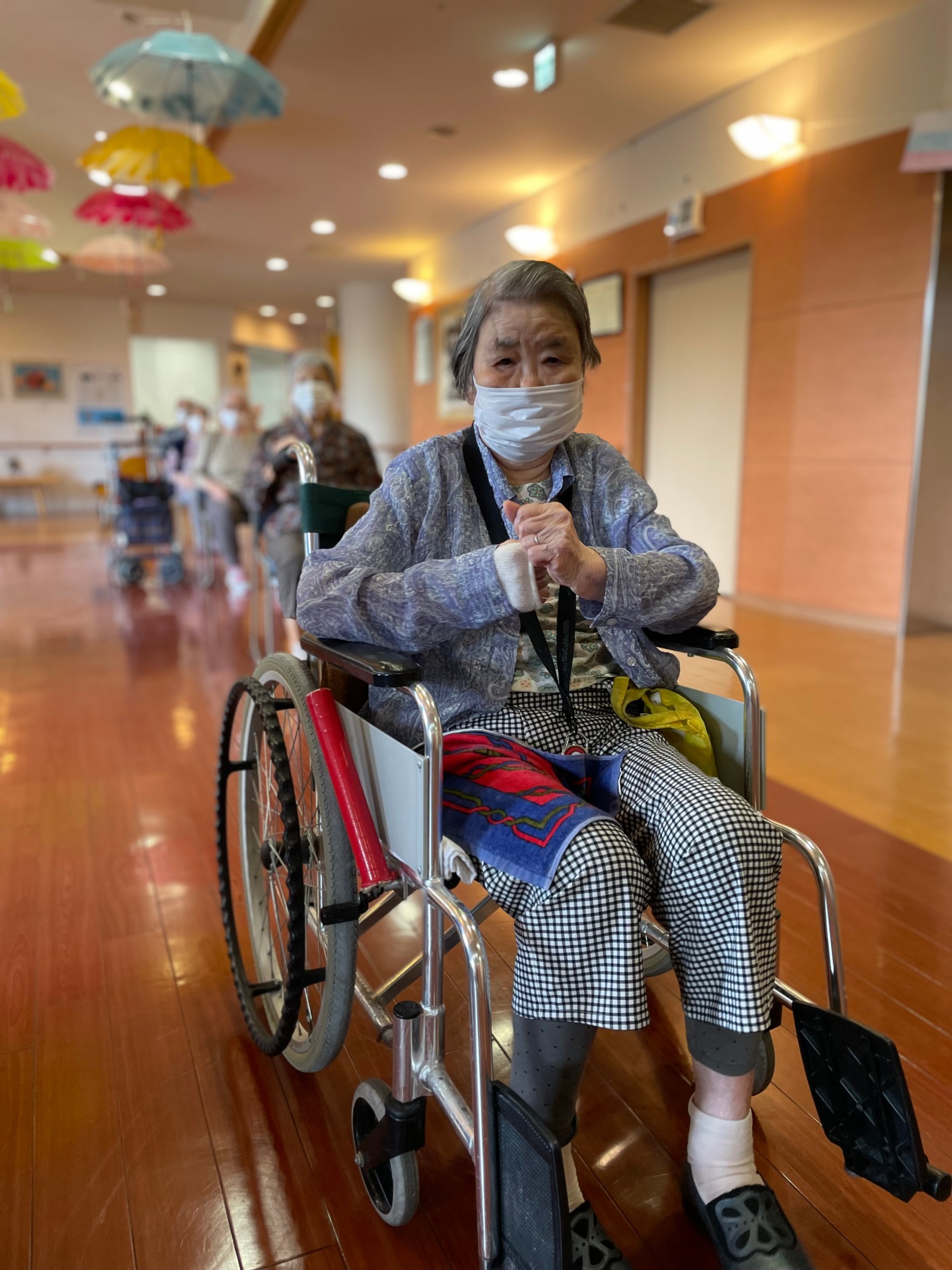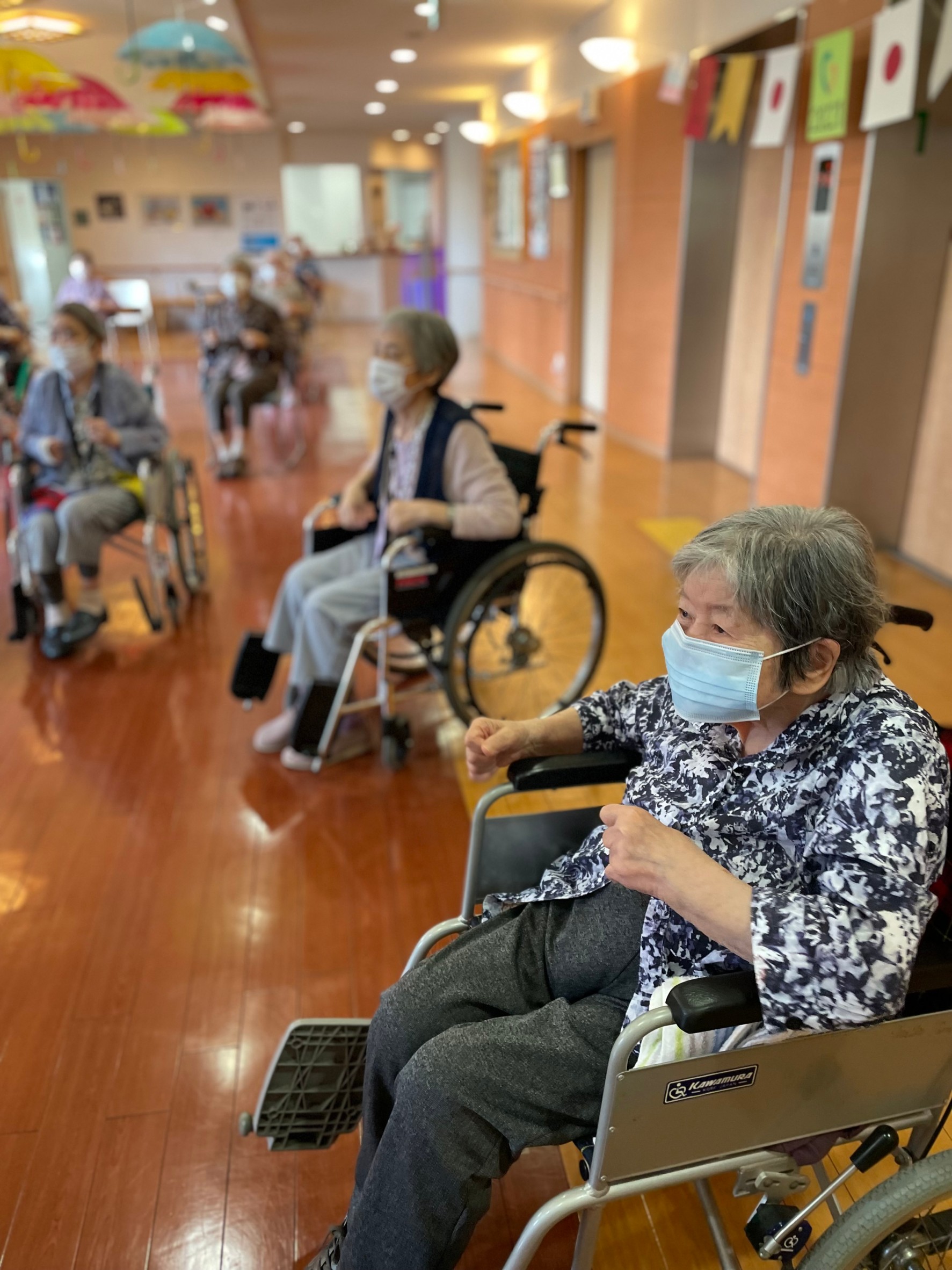 出来ることを一つずつしていく中でまずは食堂から居室まで車いすを押してとお願いせずご自身で頑張って移動してもらいたいなと思います‼︎‼︎