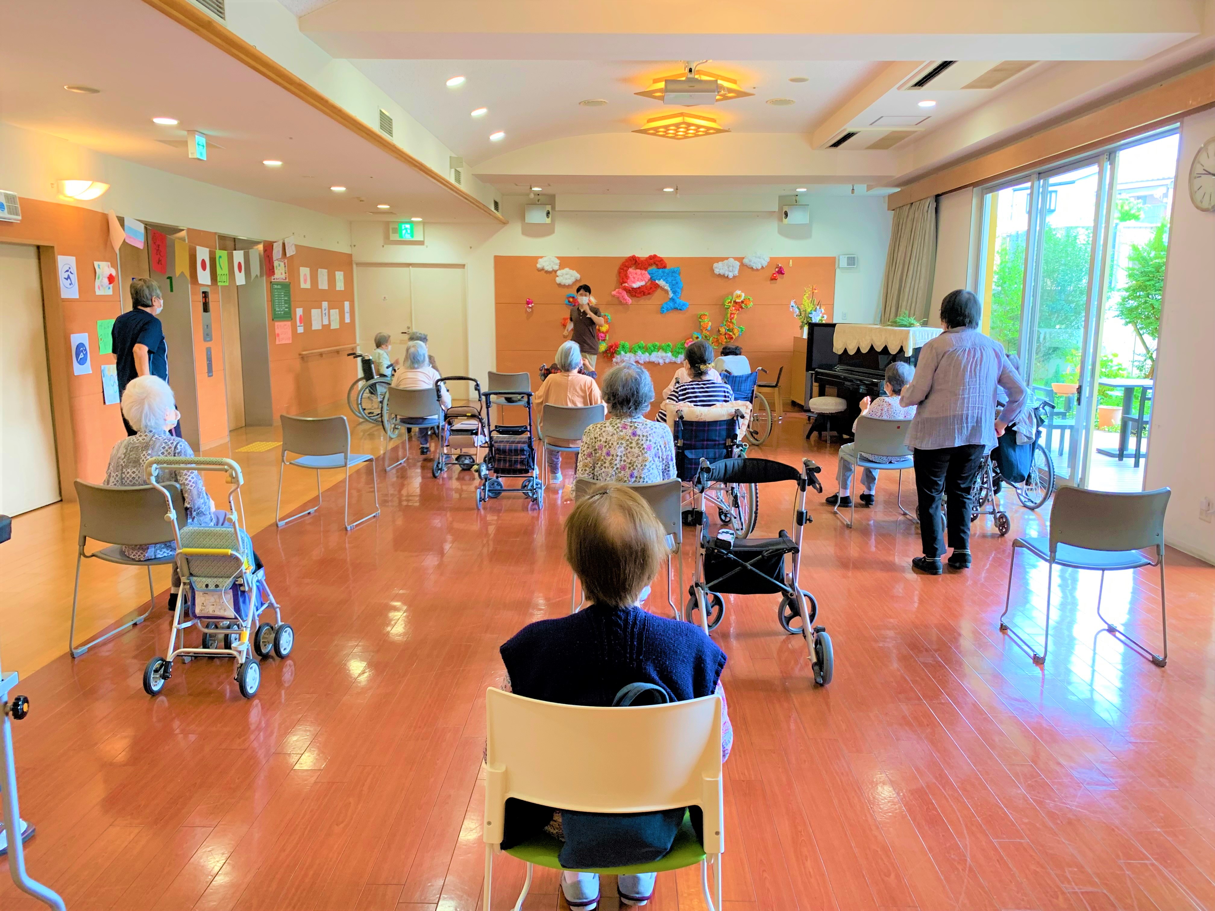 入居者様と一緒にてるてる坊主を作成し