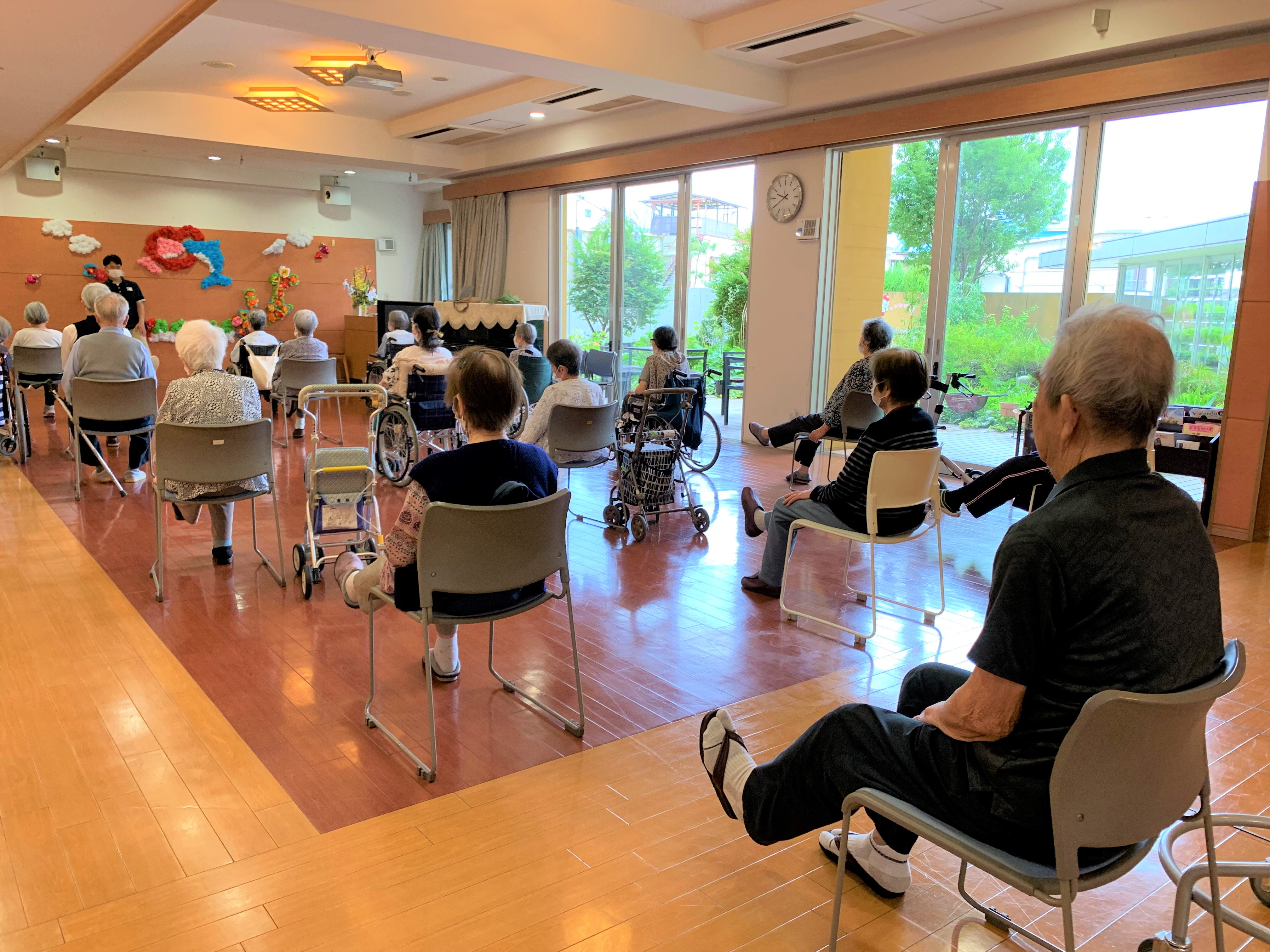 入居者様との観戦している様子や