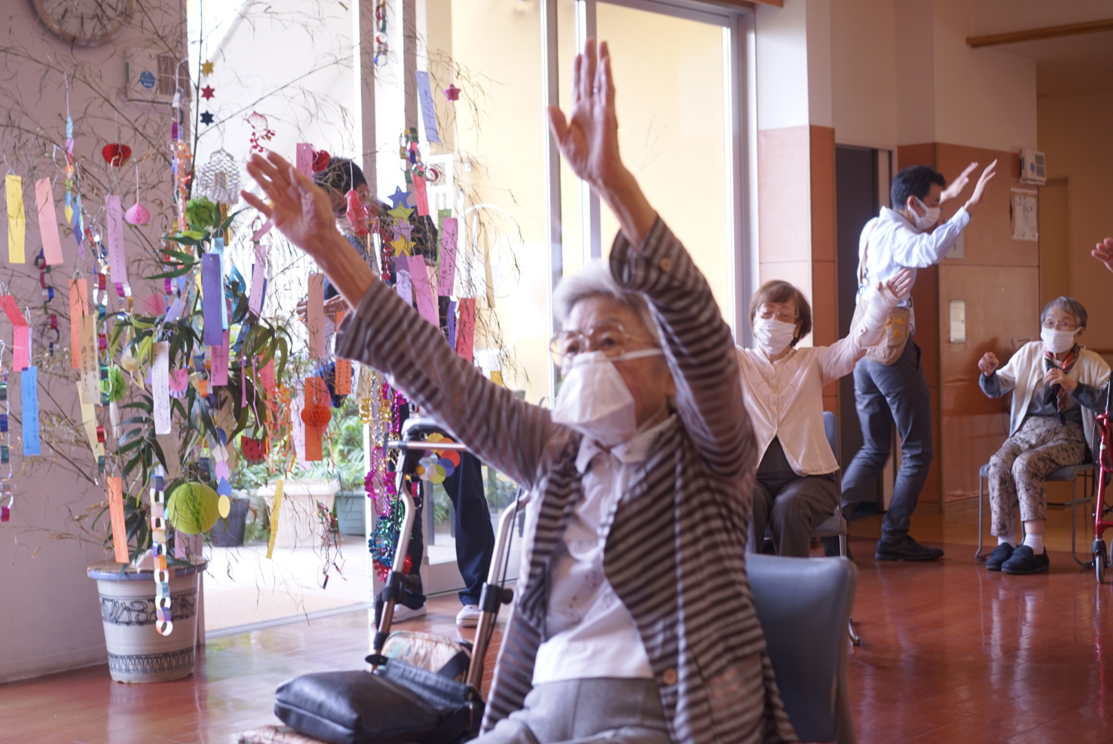 ご入居様がお書きくださった短冊を飾り付けしています。