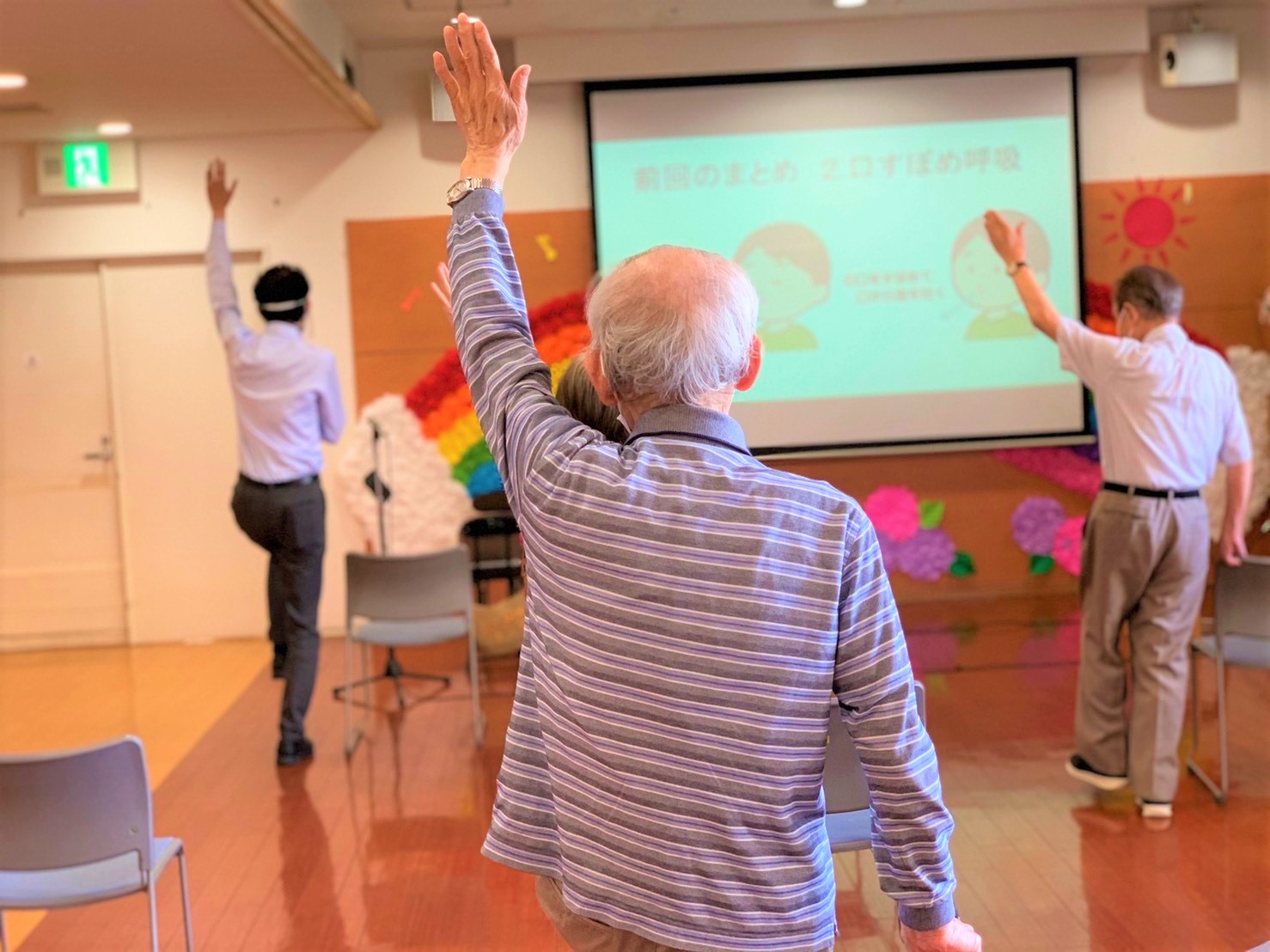 今日も朝から「暑いですね」と入居者様とお話しながら体操に皆様、参加してくださいました(o^^o)