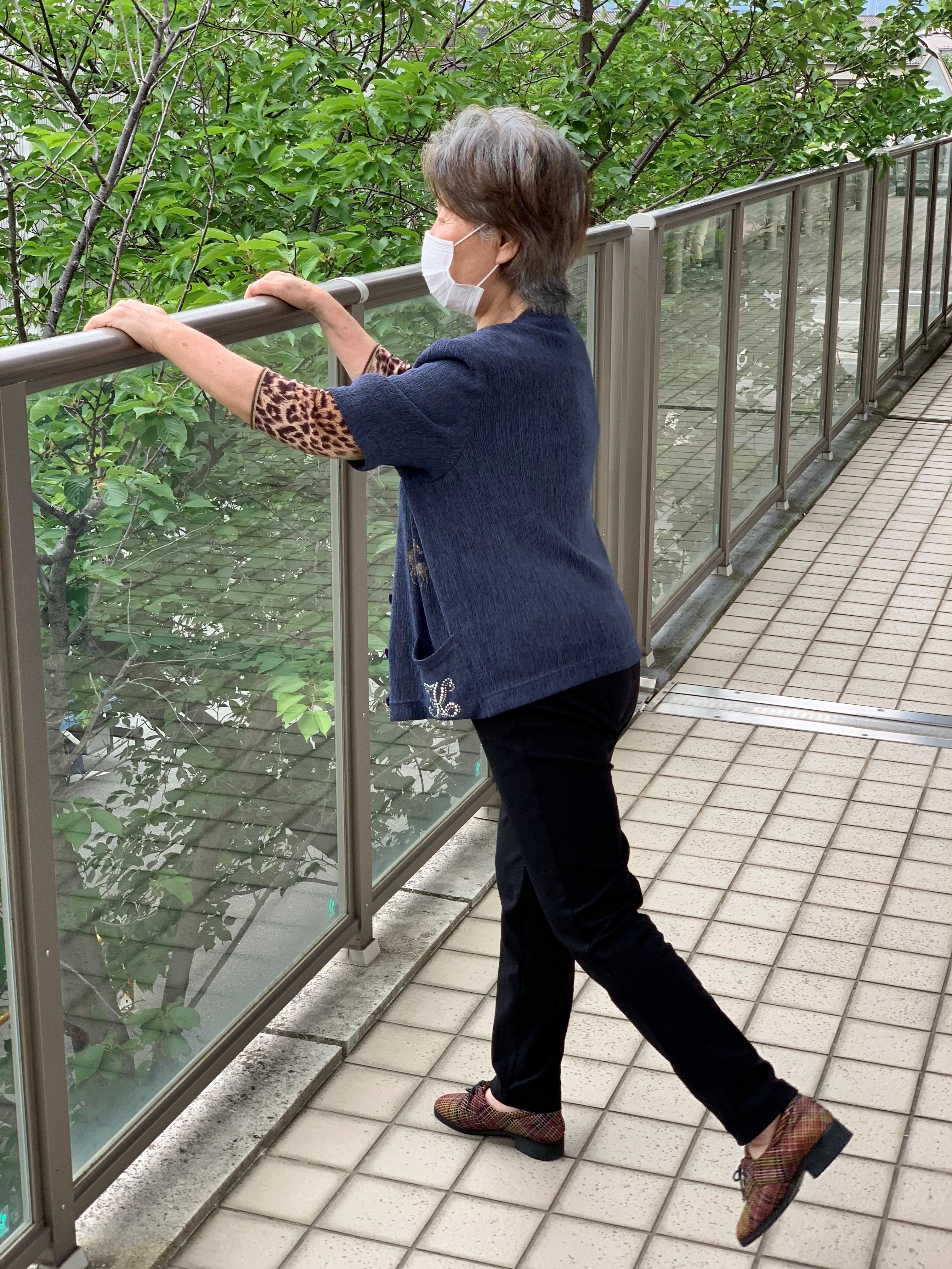 今日の一コマは風が吹いて涼しかったので渡り廊下で足の筋力トレーニングをしたご様子です(╹◡╹)