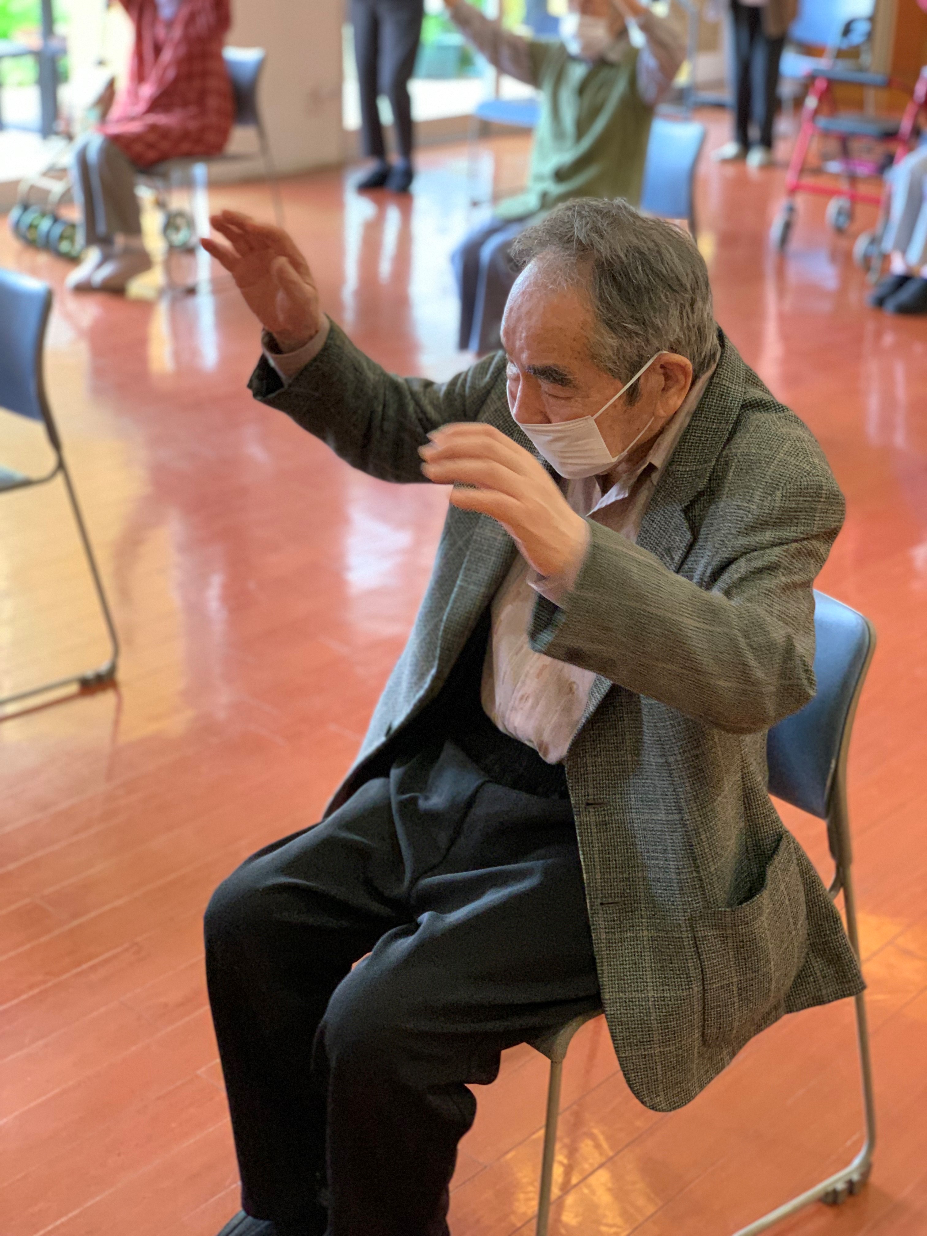 今日は朝からよく晴れていましたね、皆さま元気に体操されていました(╹◡╹)