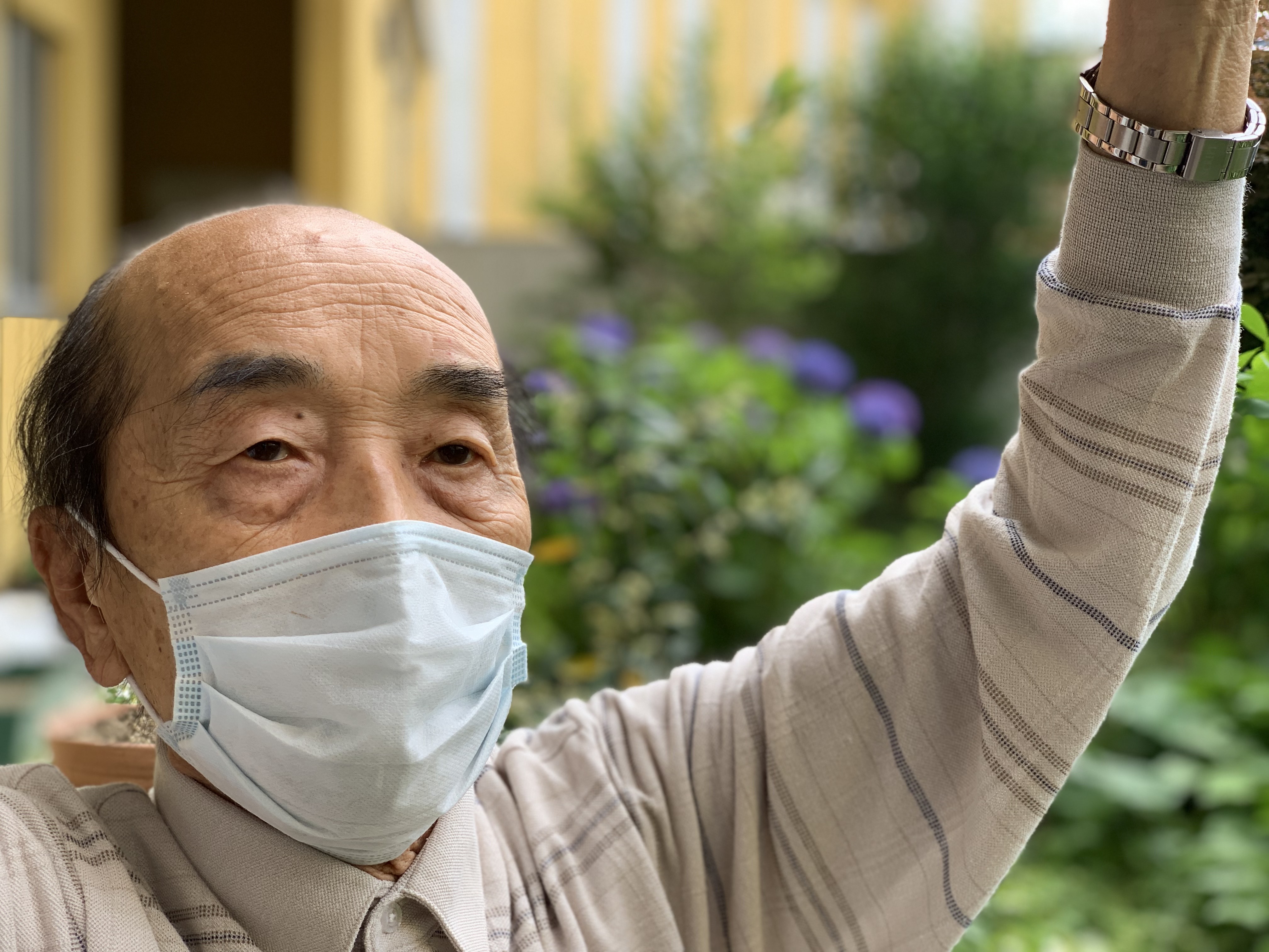 こんにちは、今日は先輩理学療法士のHさんが紫陽花の前で体操されていました(╹◡╹)