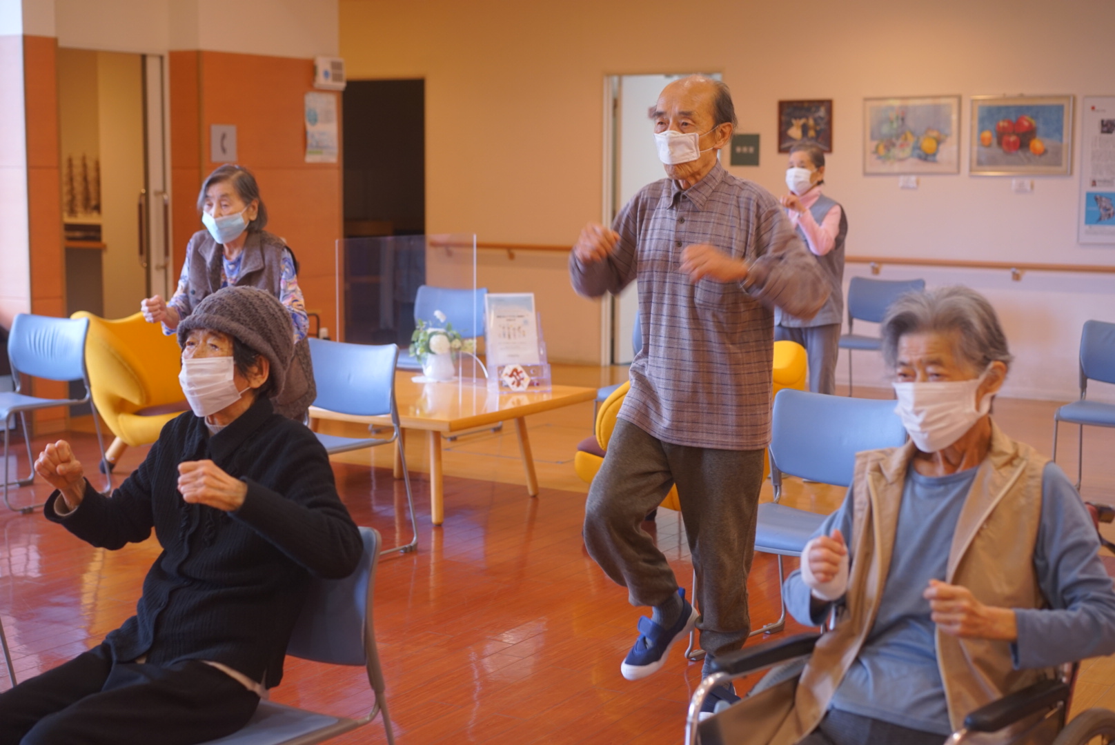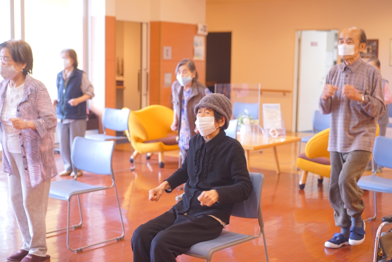 お二人とも器械を使って体操している写真ですが、お二人とも運動中は姿勢良く実施することゆっくり動くことに集中され取り組まれています‼︎‼︎