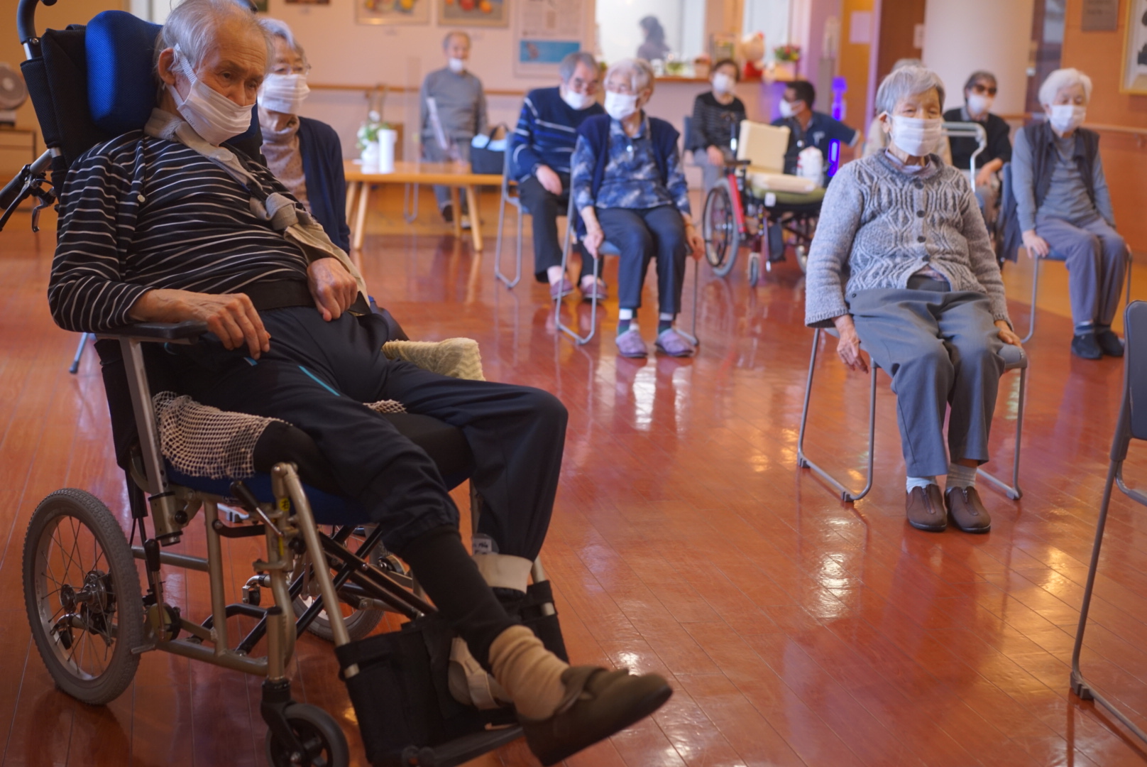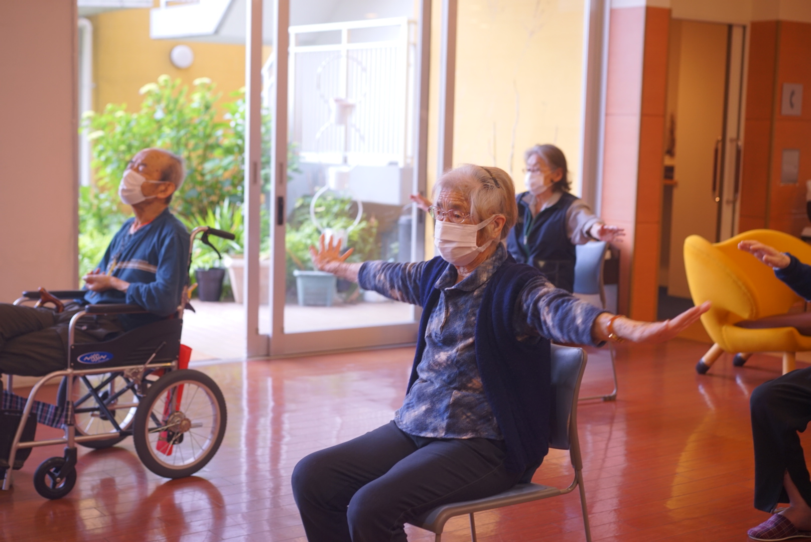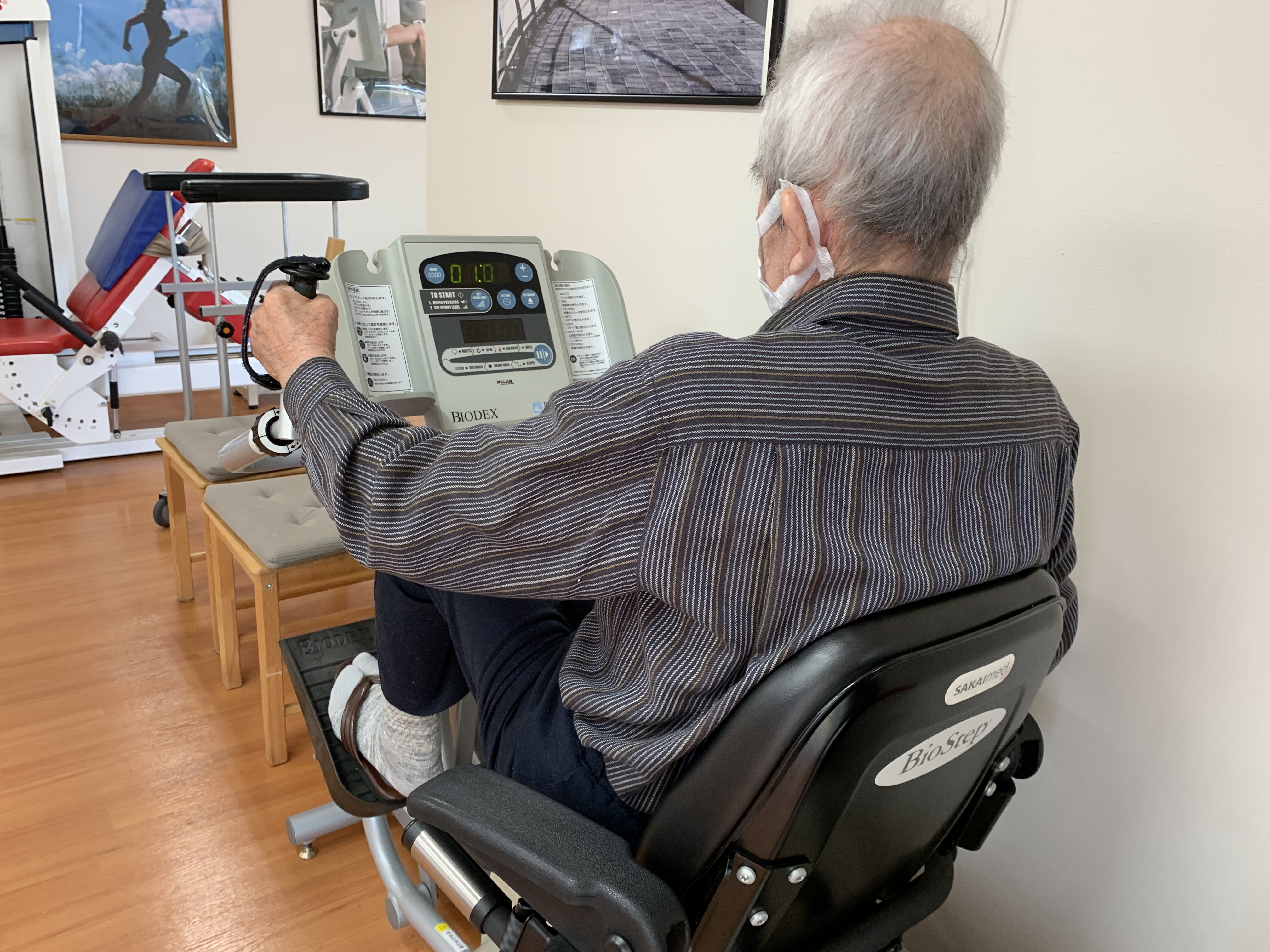 来られた当初はベッドで寝ていることも多かったのですが、いまは座ってテレビを見たり杖で歩く練習も出来たりとかなりお元気です(^○^)