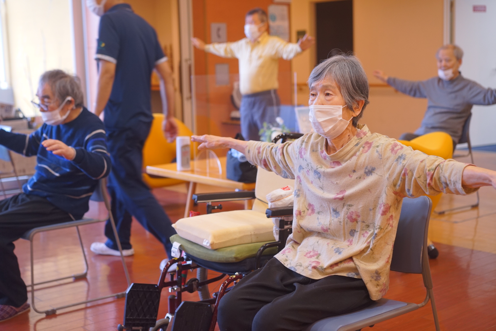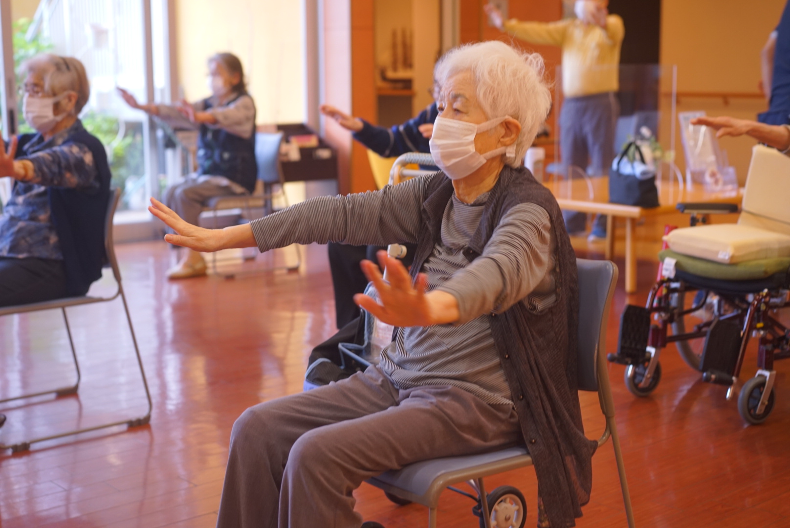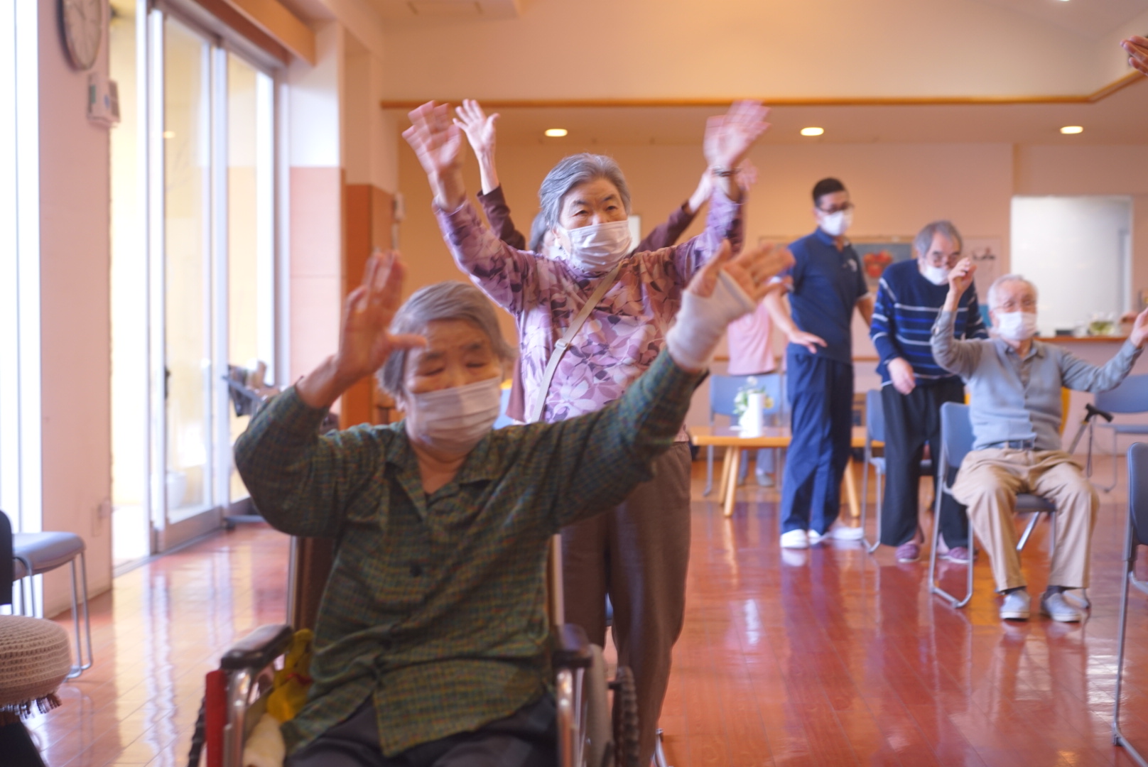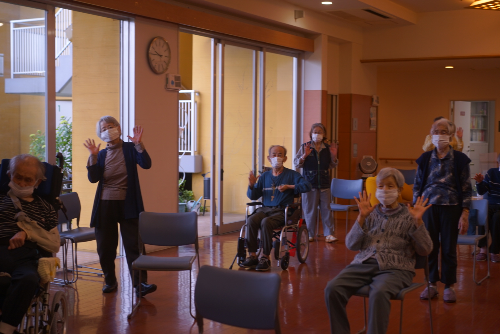 来られた当初はベッドで寝ていることも多かったのですが、いまは座ってテレビを見たり杖で歩く練習も出来たりとかなりお元気です(^○^)