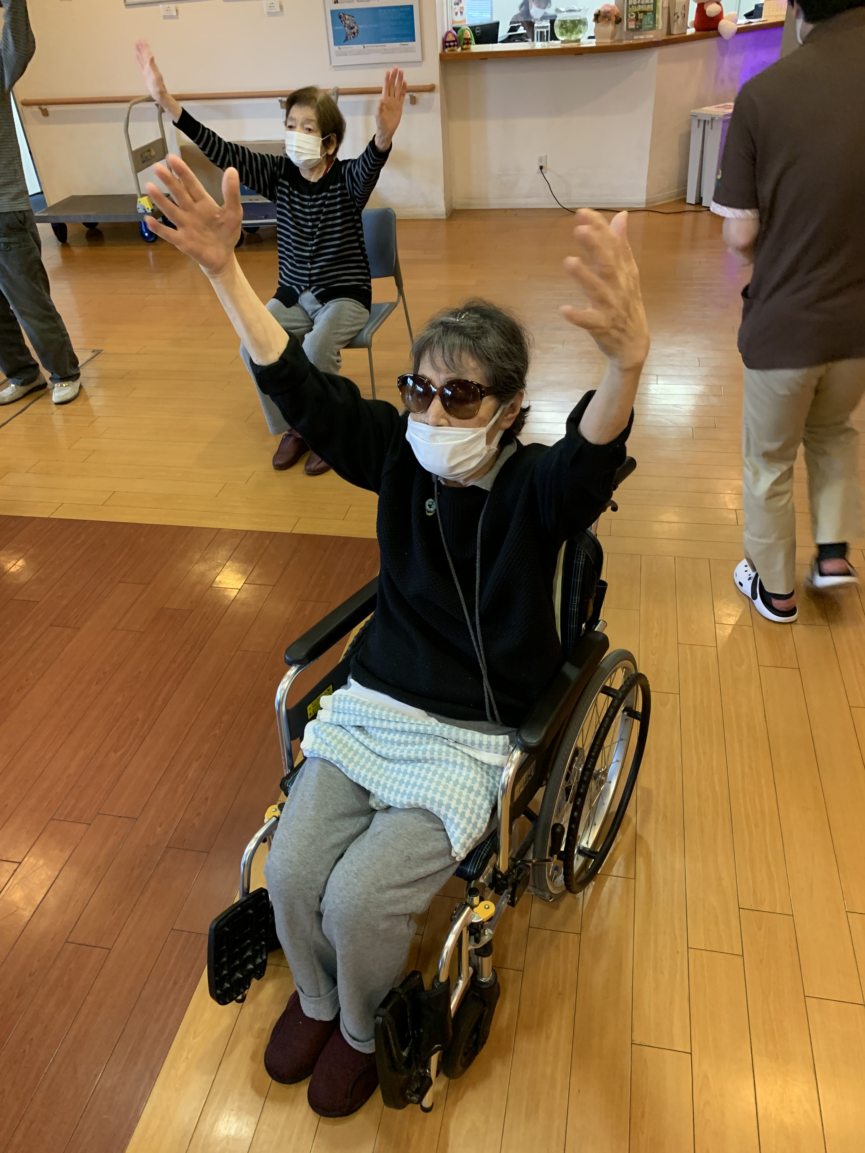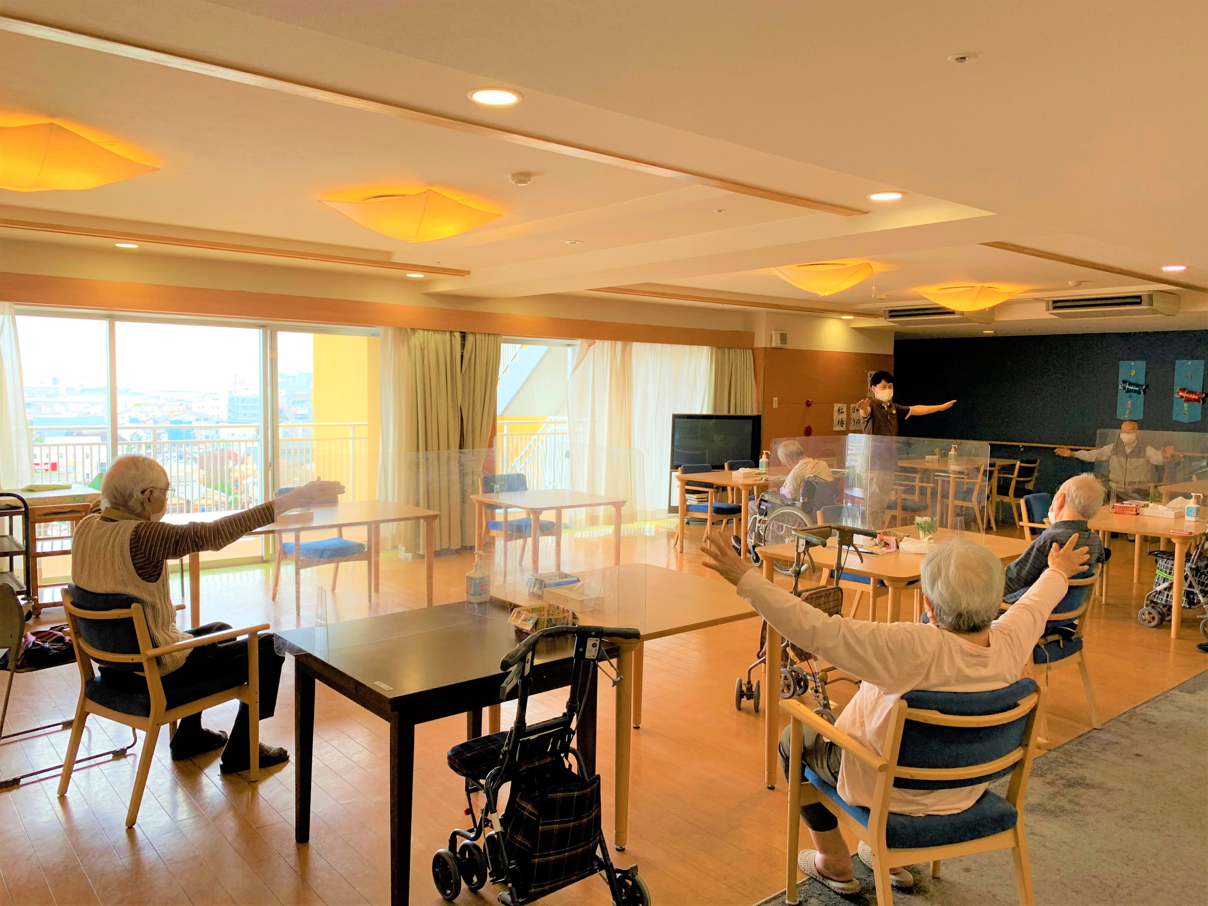 皆様、音楽に合わせての体操に一生懸命取り組まれています‼︎‼︎
