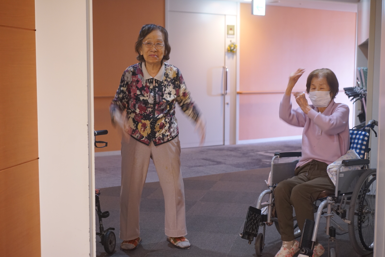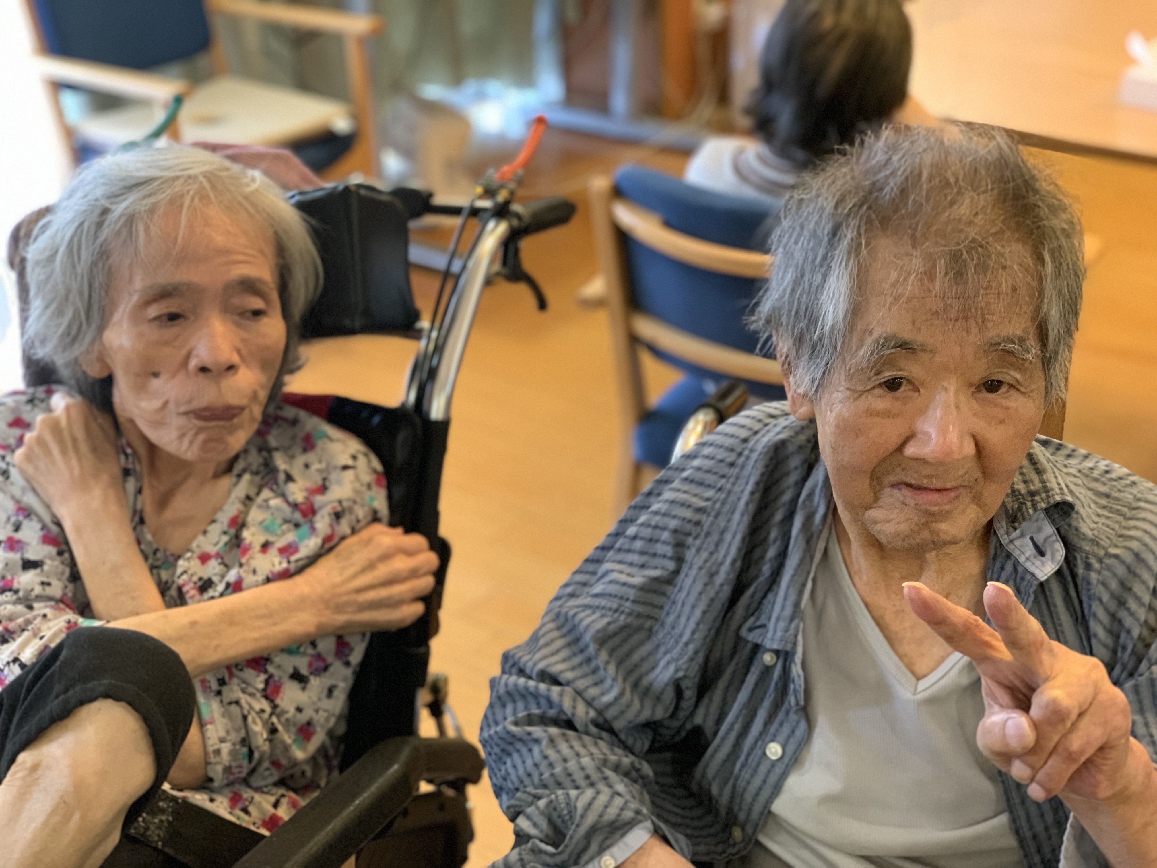 こんにちは、今日の一コマはリハビリ中に「あらOさんやん、頑張ってね‼︎‼︎」とT様が声をかけた後に「私たち今日似てるな笑」と双子の様に服が似ていたので撮らして頂きました笑