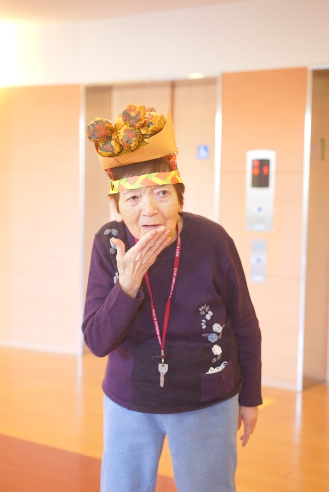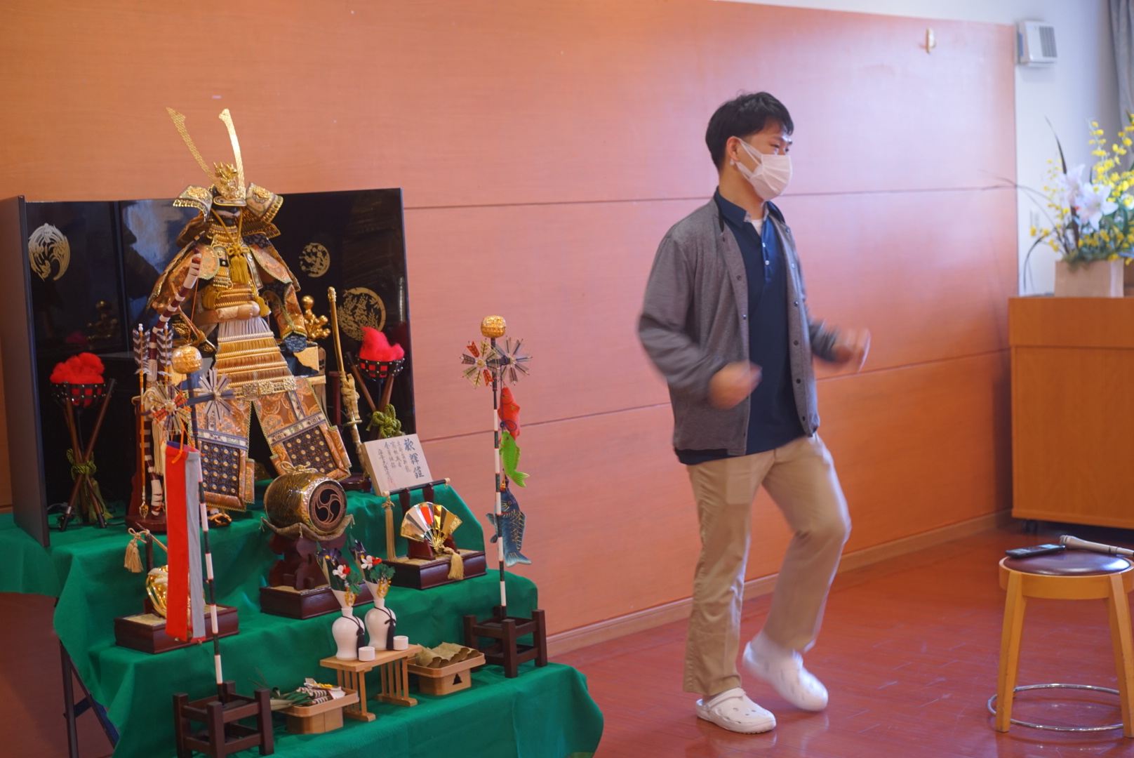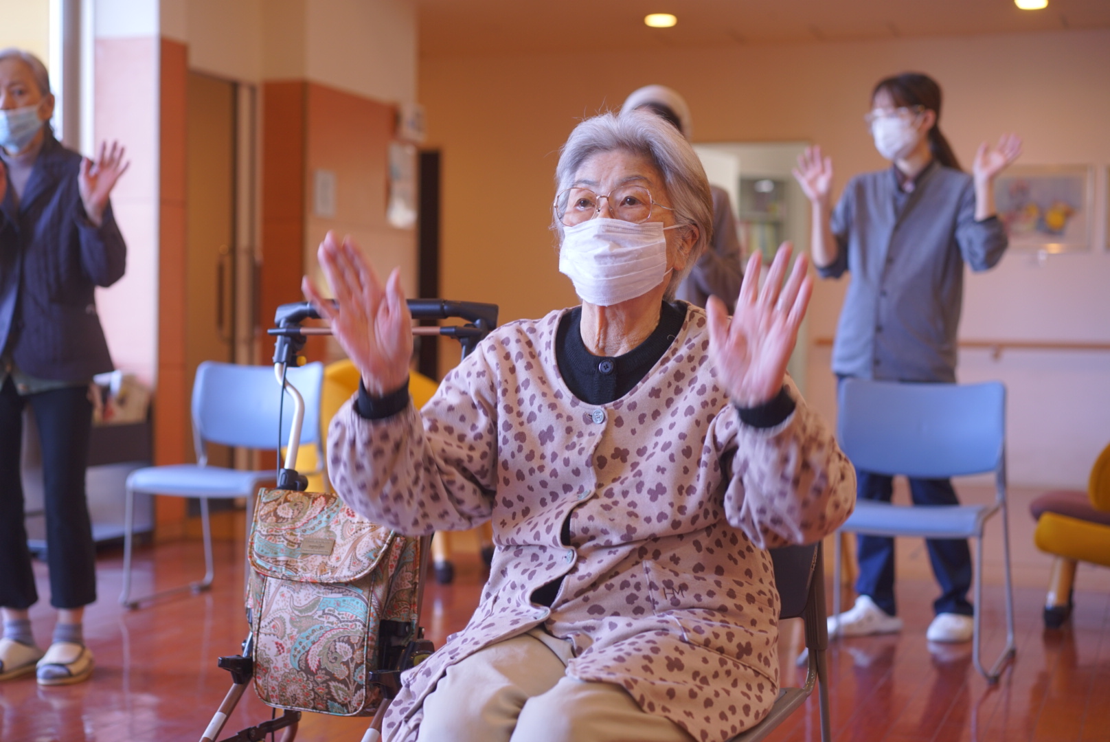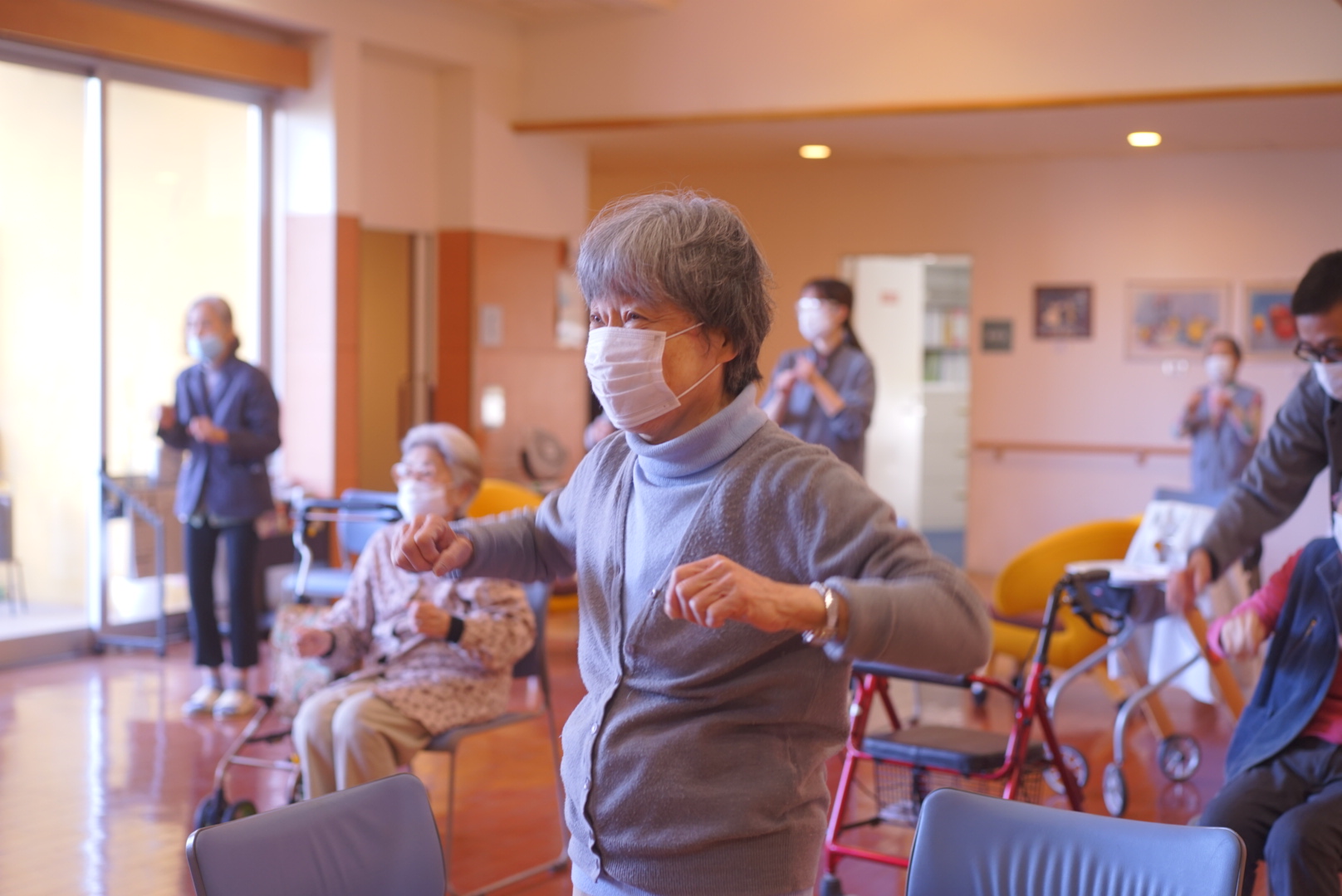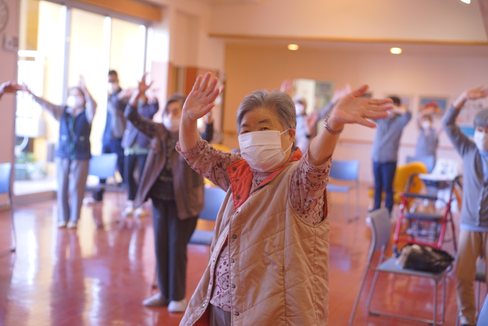 私たちが体操の場に誘導し