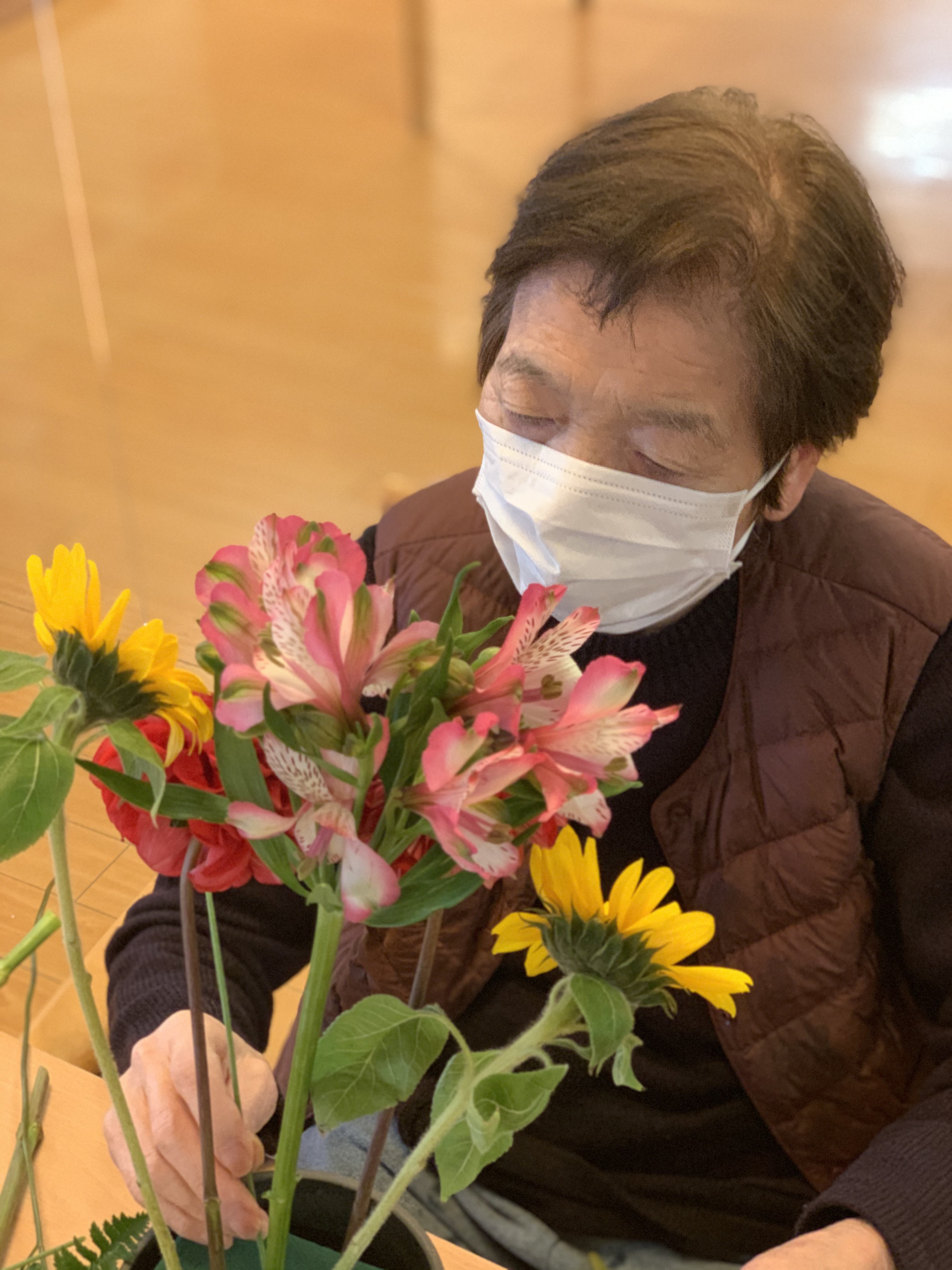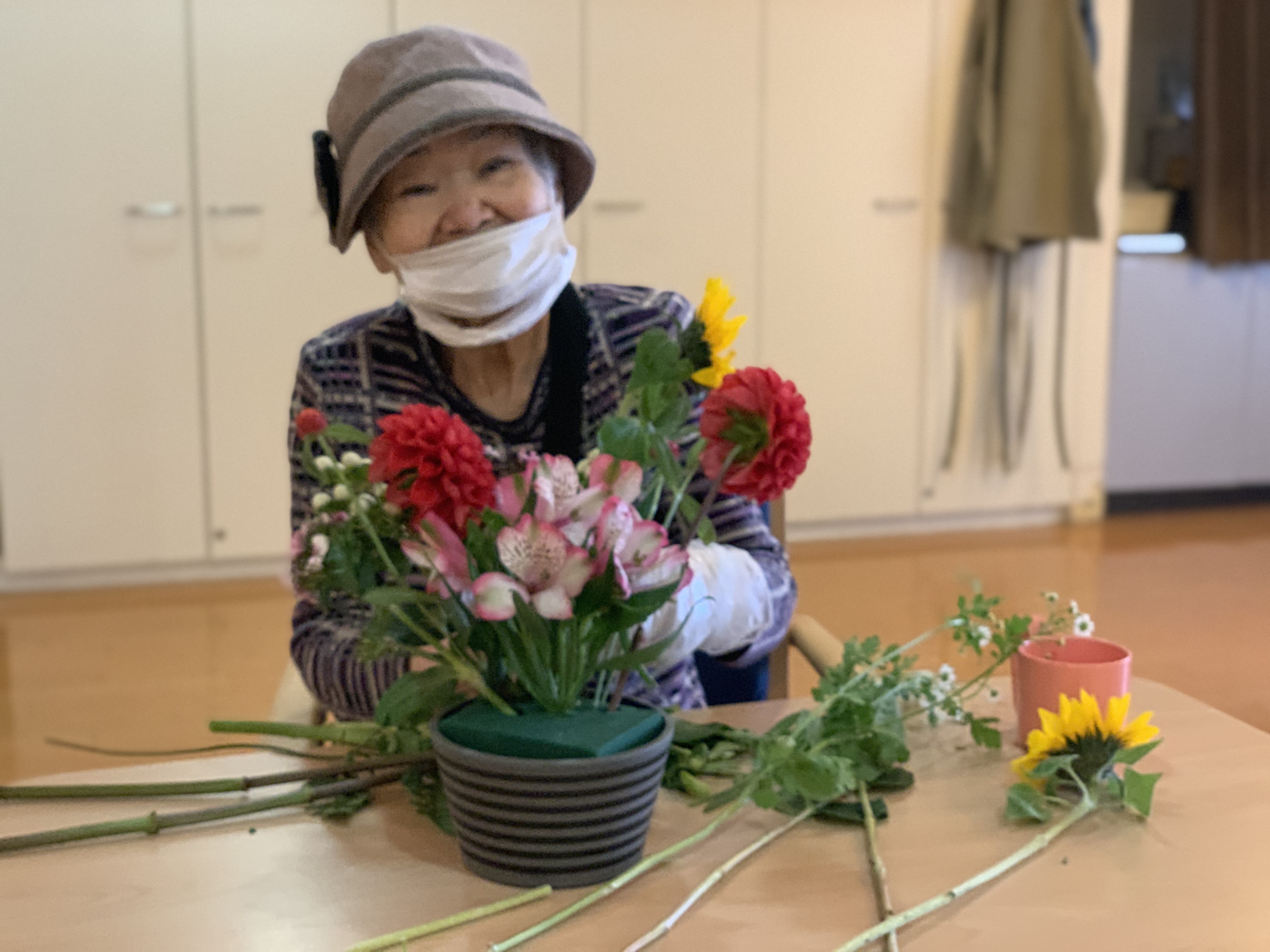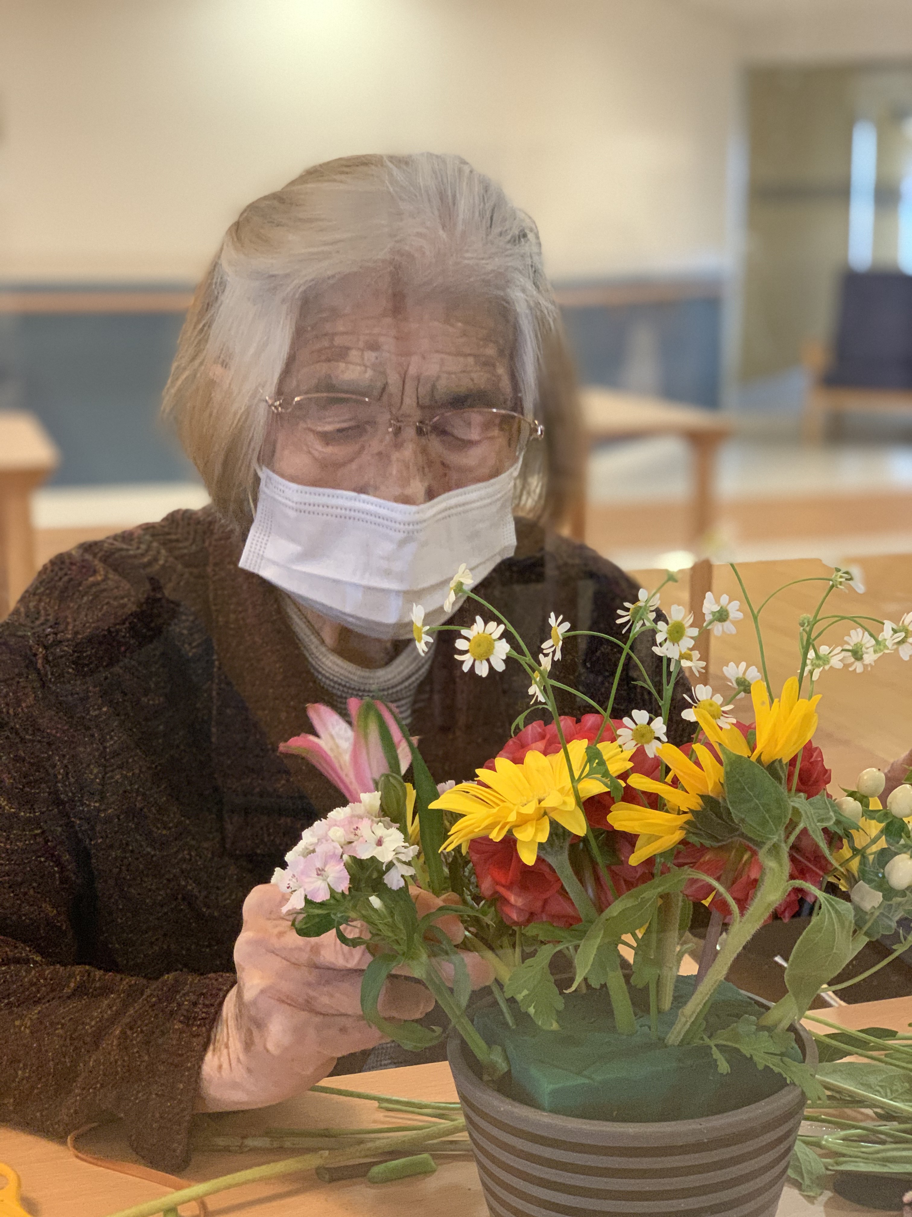 スタッフTさんが先生となりフラワーアレンジメントが行われています‼︎‼︎