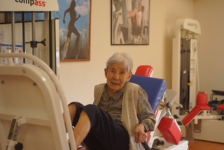 車椅子に座り