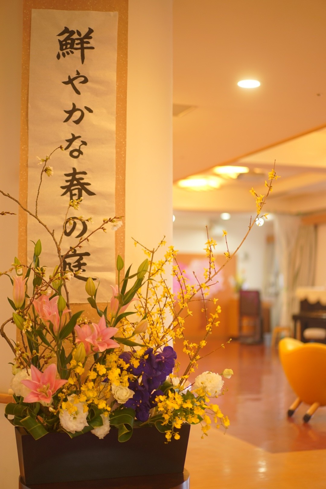 (今月もS様と看護師Tさんの書道とお花のコラボです✨)