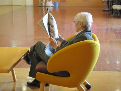 ラジオ体操の後は新聞です。