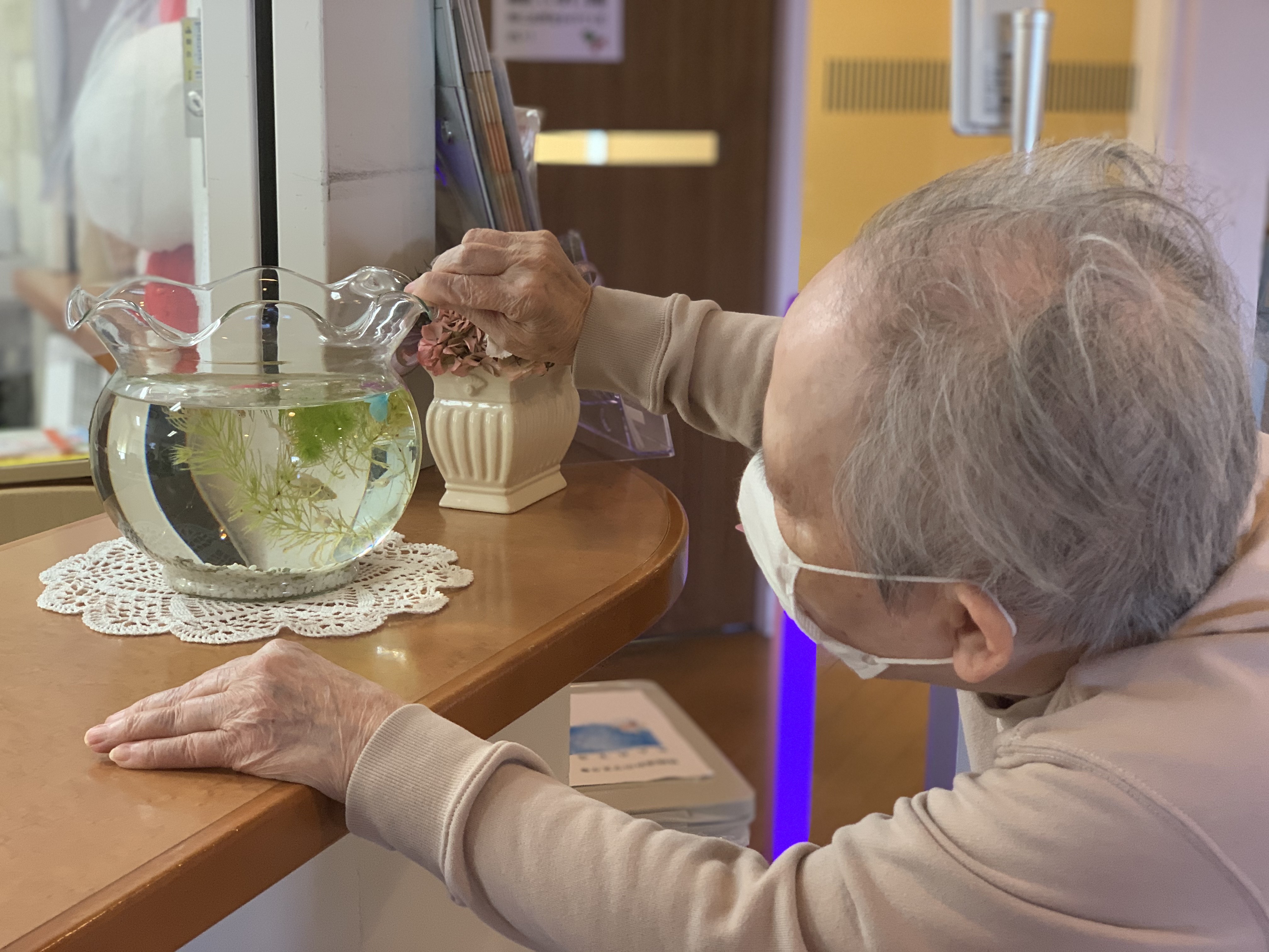 サザエさん体操とメダカを見に1階まで降りてきて頂きました( ◠‿◠ )