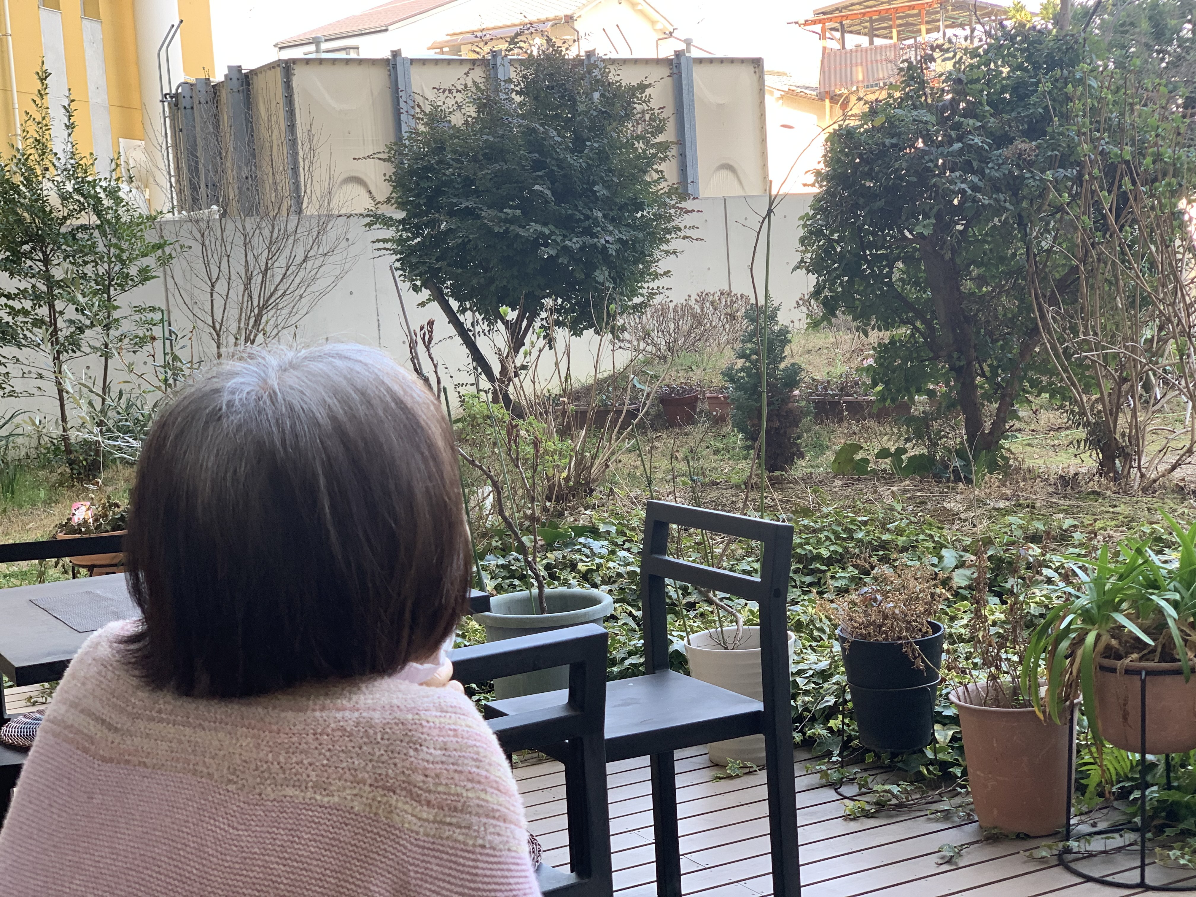 最初は嫌がっていましたが、1階の中庭にも歩いて一緒に来てくださり今日はとても頑張られました(o^^o)
