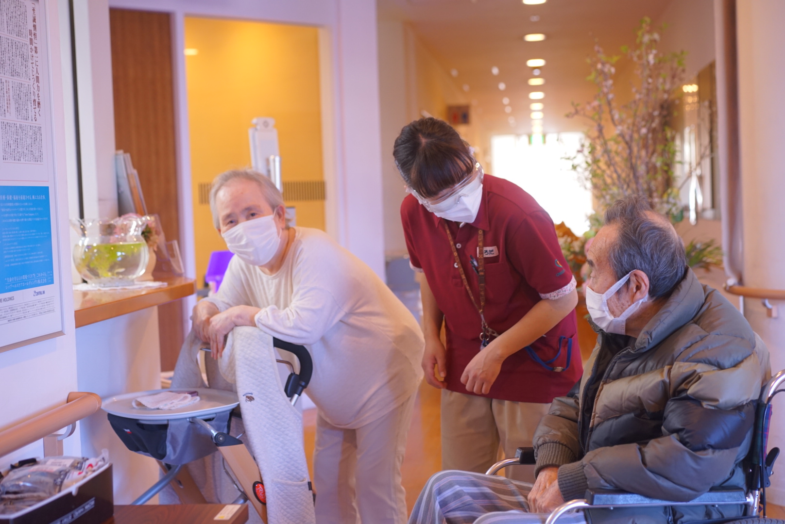 一緒に廊下を歩き歩行チェックです、雑談を交えつつ話しながら歩けるかなどもチェックしています(o^^o)