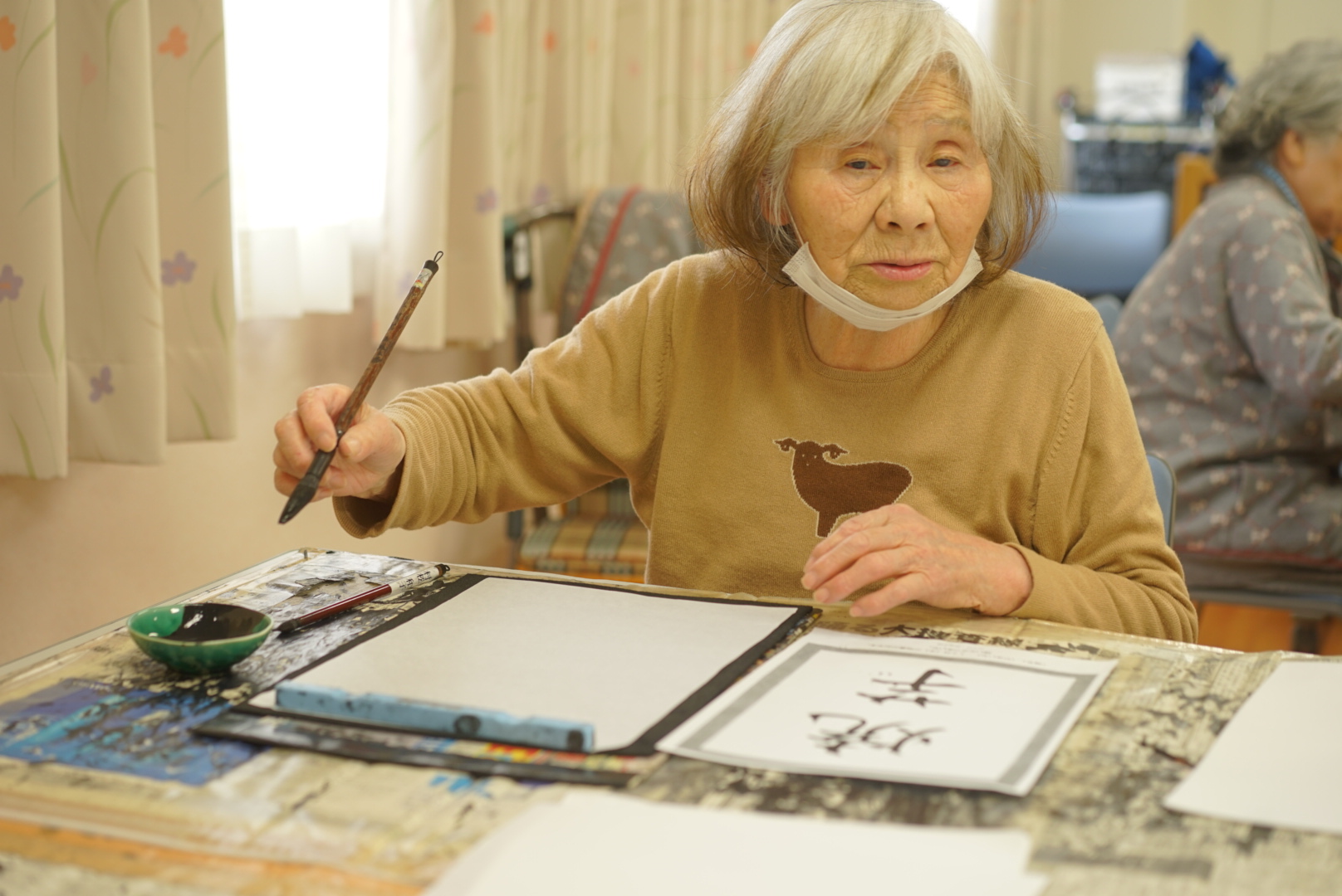 お手本前に真剣な表情