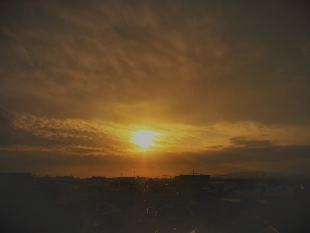 窓から眺める夕日は