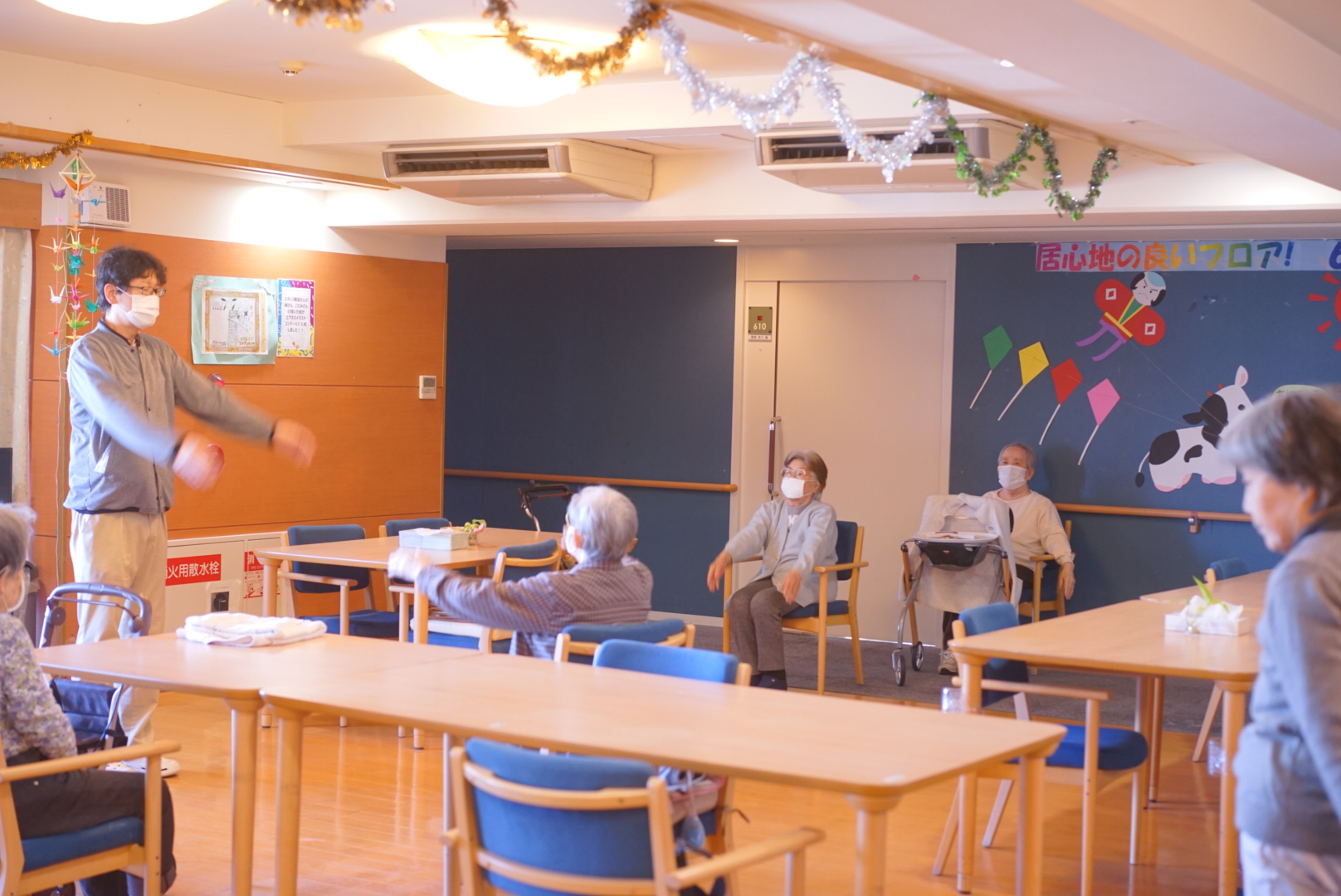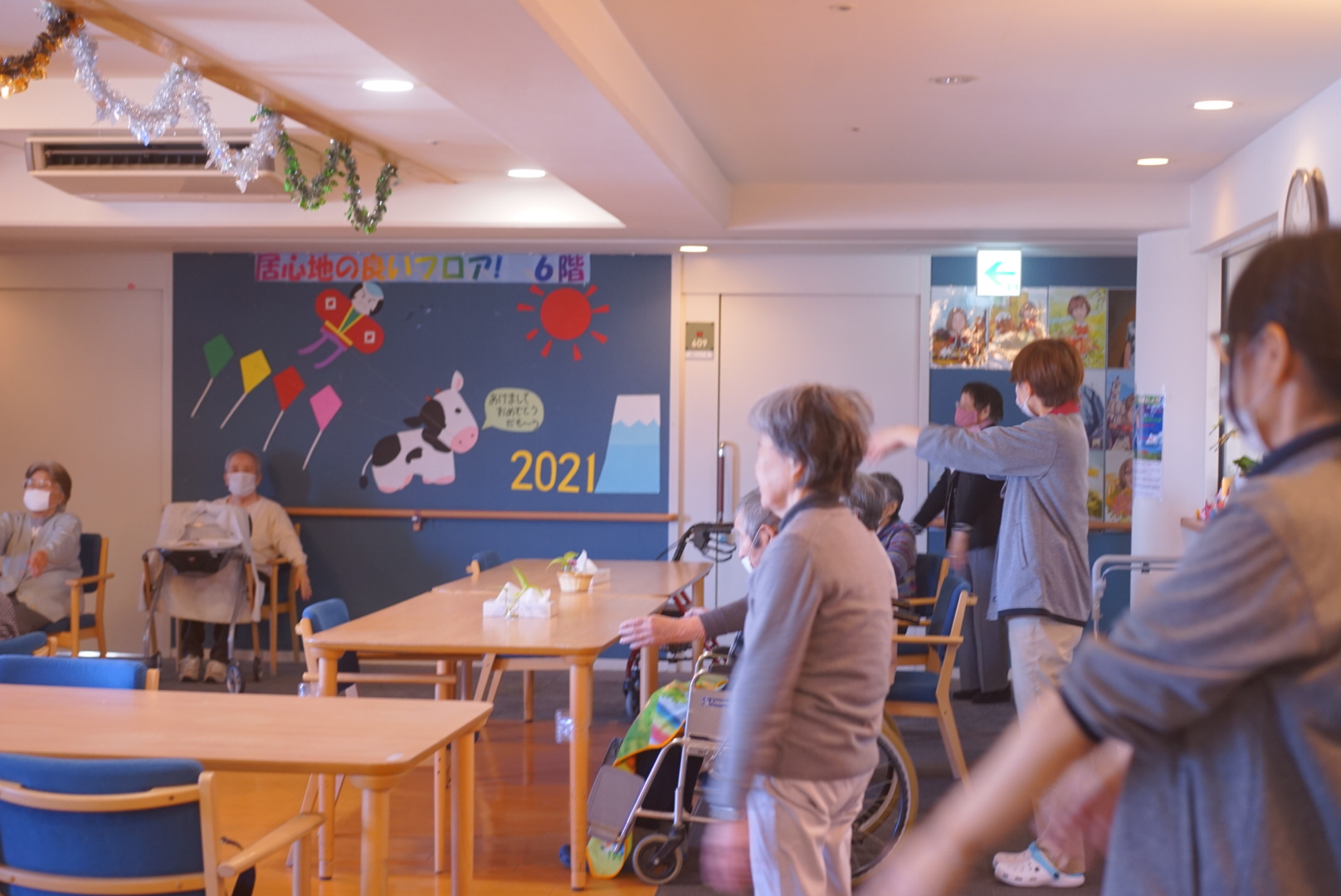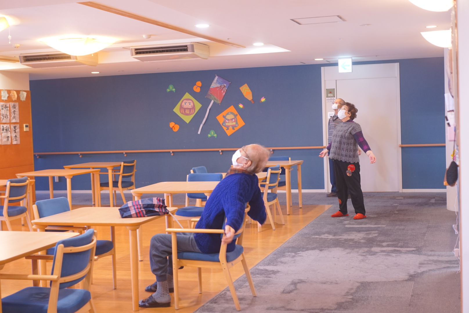 午後も新春の描画とサザエさん体操