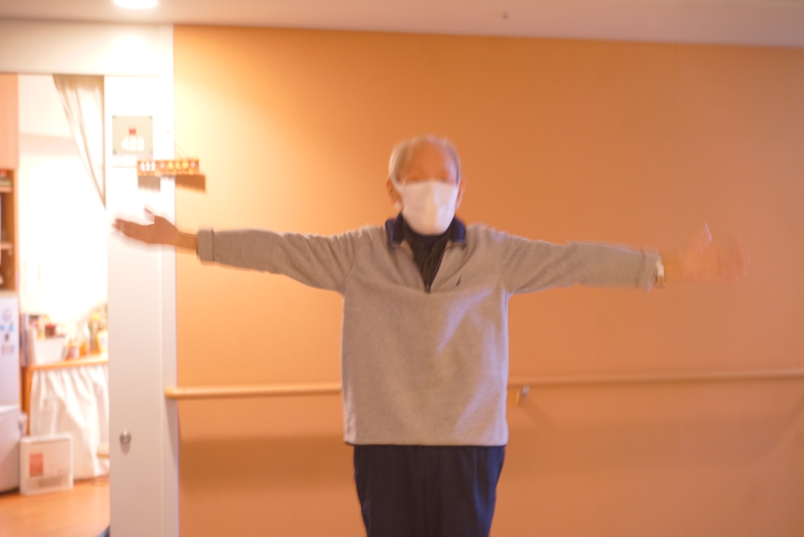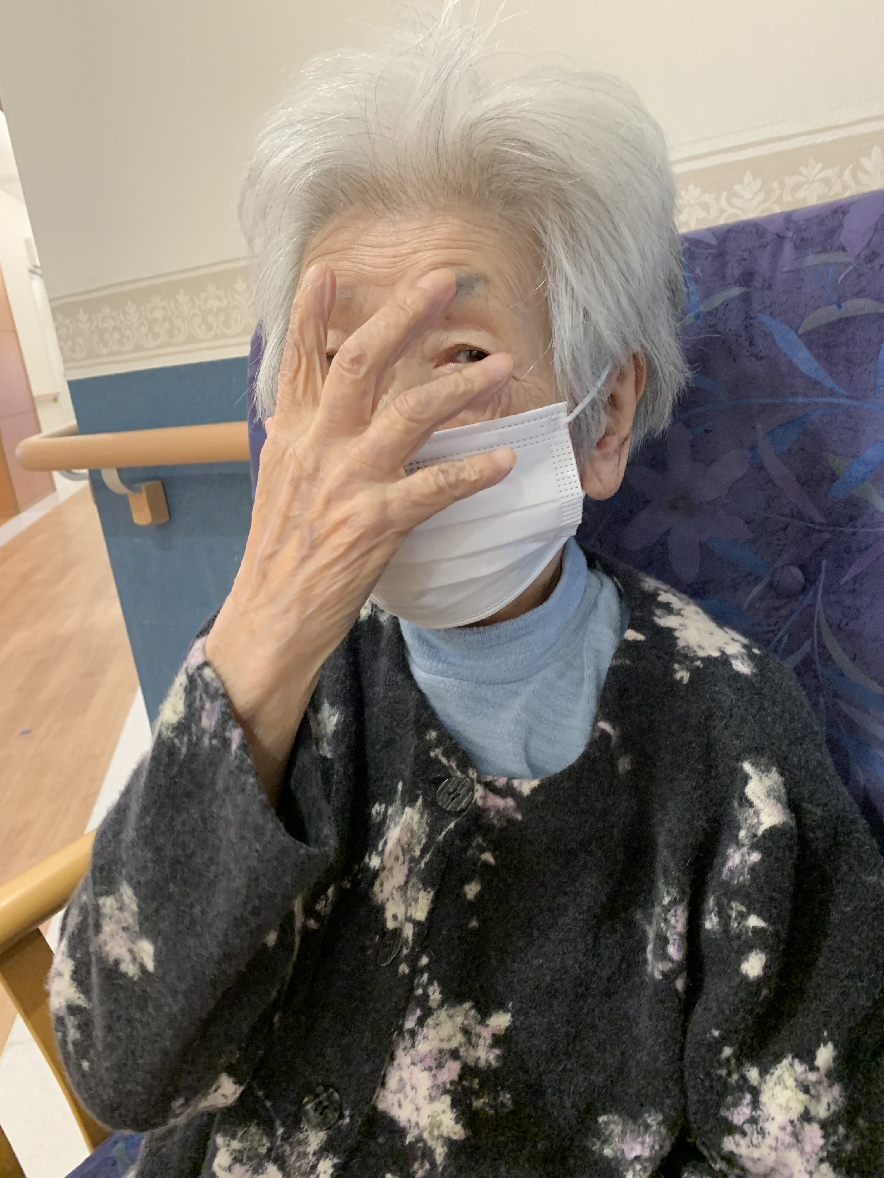 歩行運動後の写真を撮らせて下さいとお願いすると、「顔疲れてるやろから隠していいなら」と許可を頂きました笑