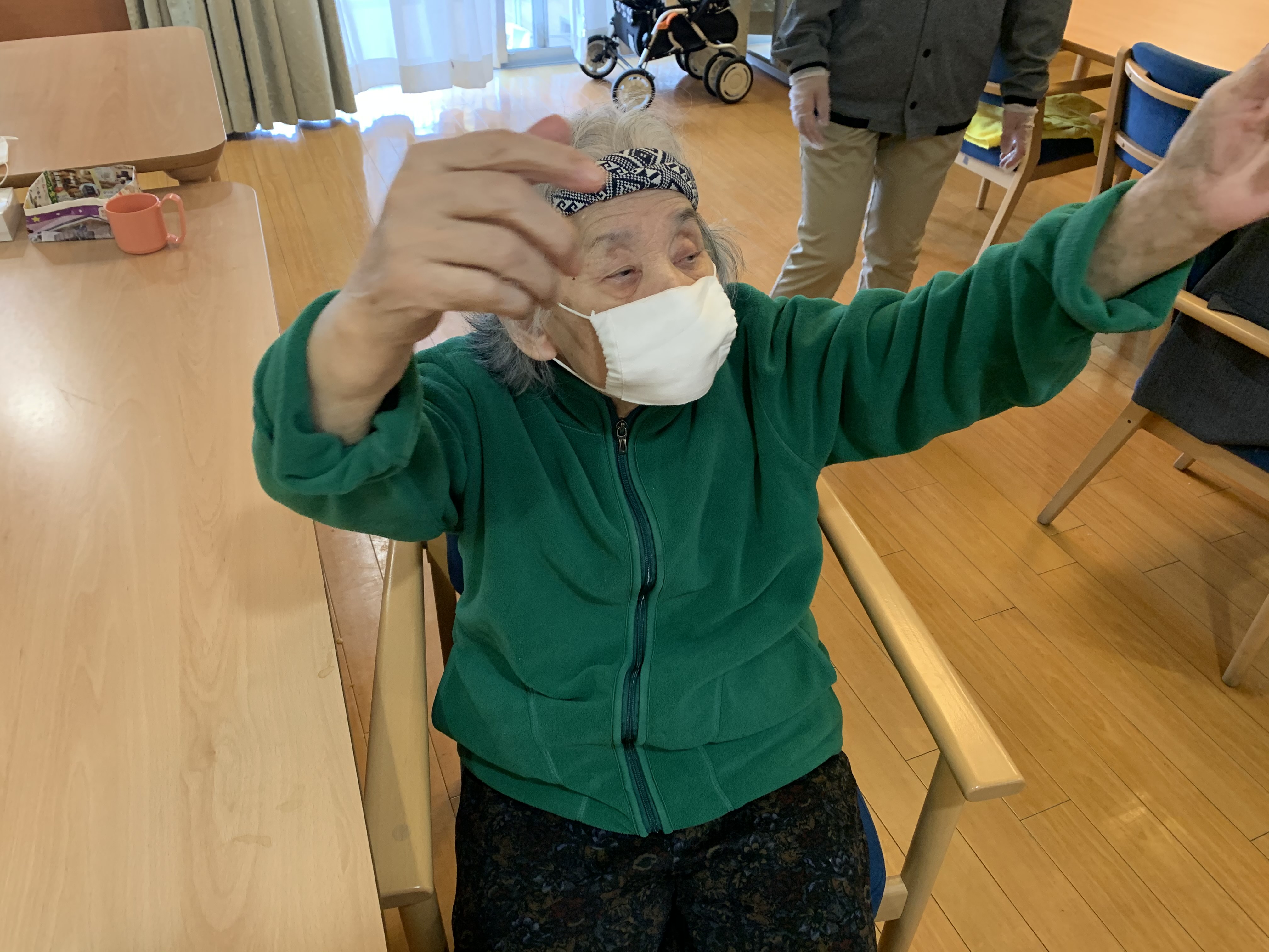 他の入居者様は体操しているように見えるのですが、I様はこう見えても体操しています)^o^(笑