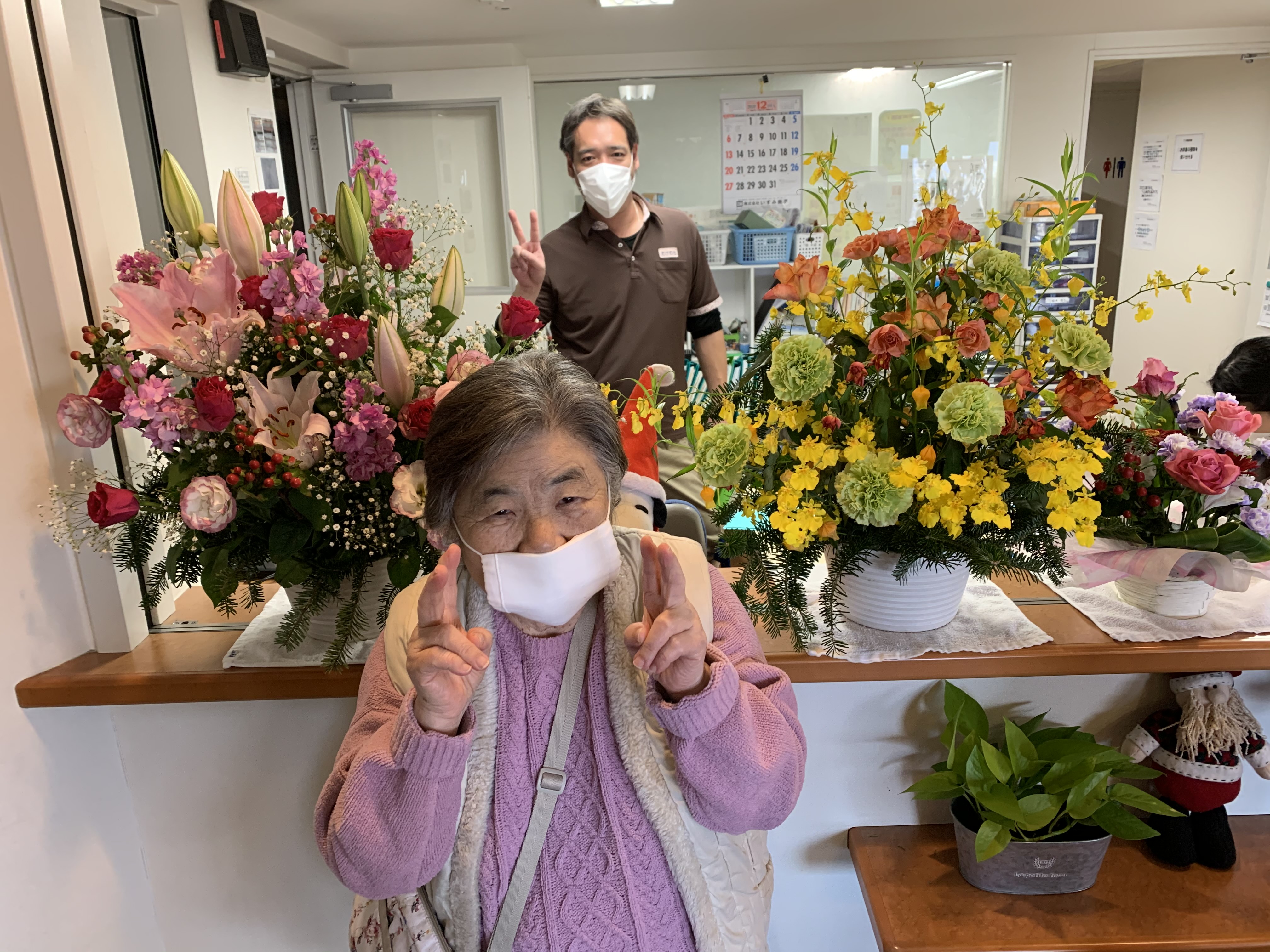 キレイで立派な花ですね〜と言うとA様とM様揃って「私らには負けるけどな笑」とおっしゃられたのでじゃあお花の間で一枚撮らしてくださいとお願いしお花もお二人ともキレイに撮れました(o^^o)