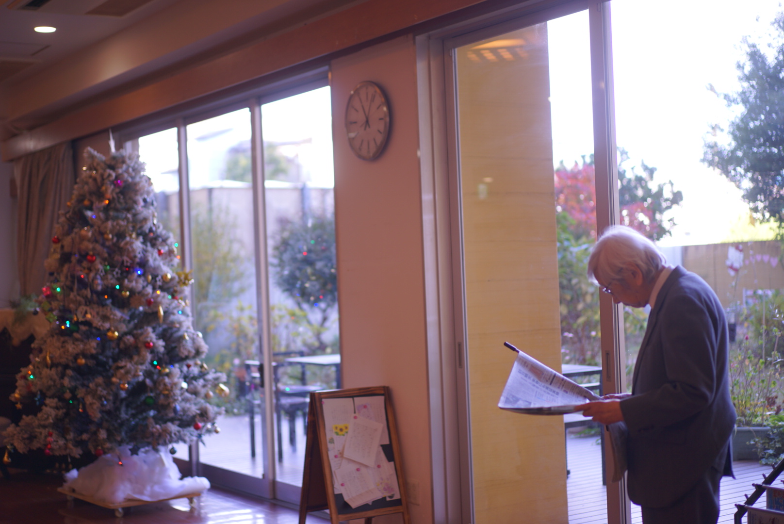 ロビー室で 新聞を読む📖👓