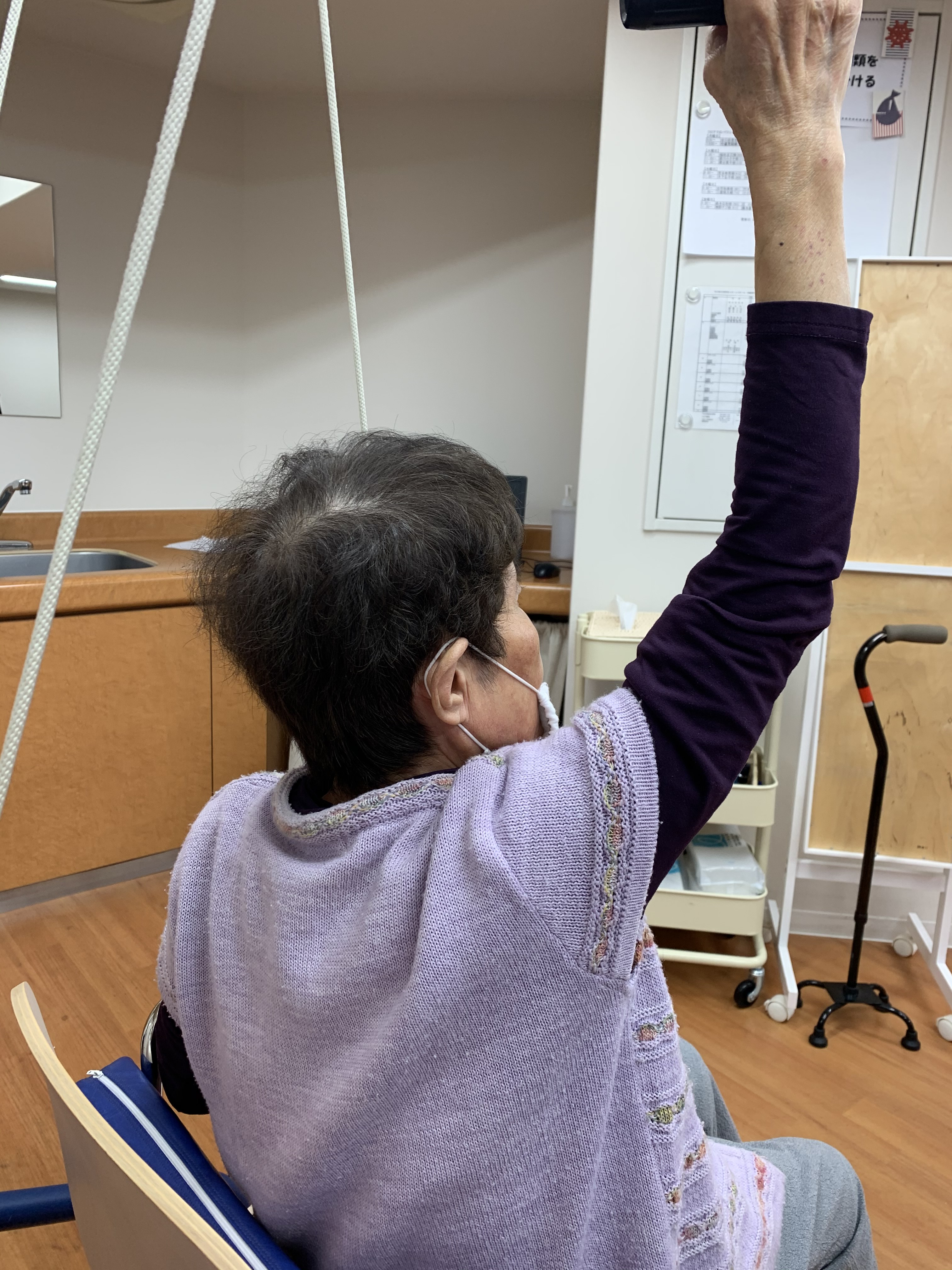 今日の一コマは先輩理学療法士UさんによるF様のリハビリ場面を見学しました。