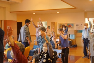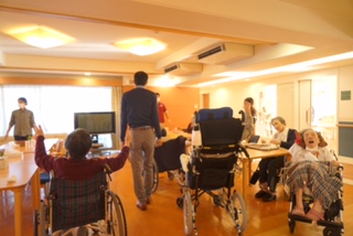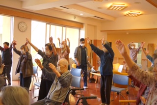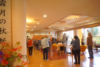 今日の一コマは転倒予防運動の様子なのですが、転びそうな場面ではなく、最近体重がちょっと増えて「疲れた〜〜もう帰らしてよ〜」と弱音を吐いているM様です笑