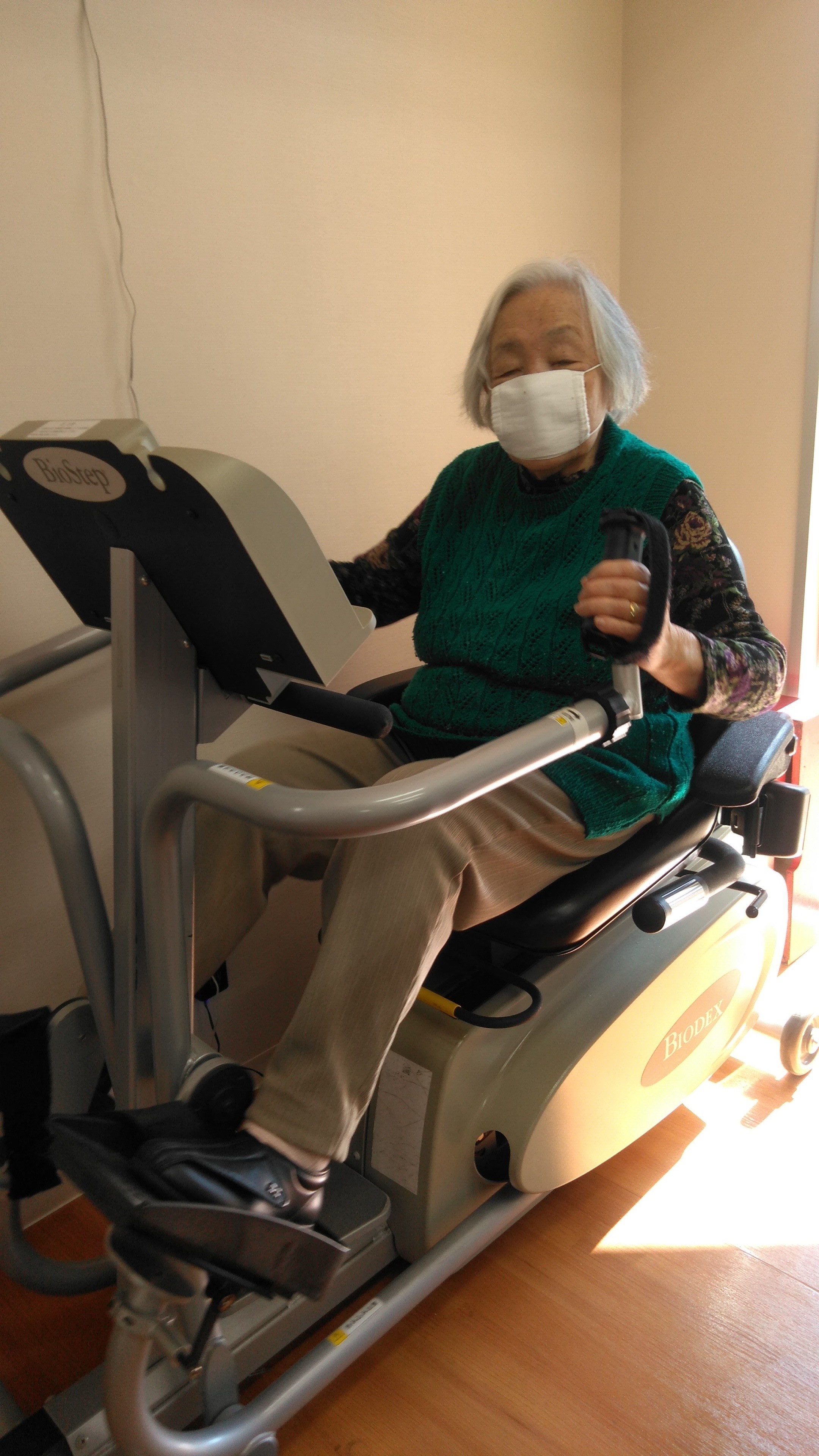 「あんたが来て誘ってくれる時に行かんとな」と笑っておられましたが、歩行を見てもうすこしここの筋肉鍛えないとダメですね〜と提案すると「考えただけで疲れてきた」と早くも逃げ腰でした笑
