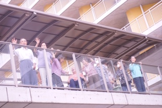 渡り廊下で、今日もしっかり