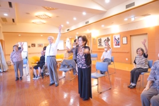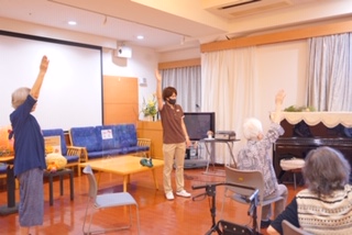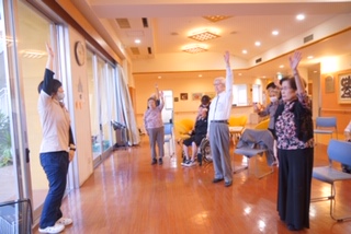 そんな日でしたが歩行運動は渡り廊下で実施しました。
