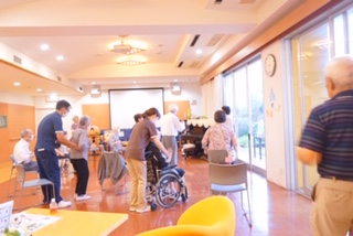 雨だったのでどうかなと思ったんですが、腕を組んで歩こうと入居者様から言って頂いて仲良く歩いて頂きました!!!!