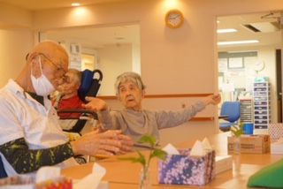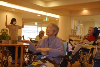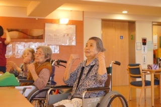 今日の入居者様ラジオ体操2階バージョン