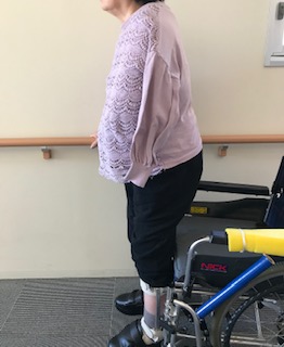 また、起立訓練をしているK様も当初は背中が曲がり姿勢が悪かったのですが最近著しく姿勢が良くなってきました!