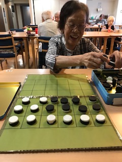 今日もリハビリの延長としてK様と頭の体操(オセロ)を行いました。なんと結果は引き分け!