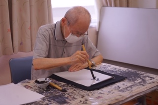 静かに筆を動かしておられました。