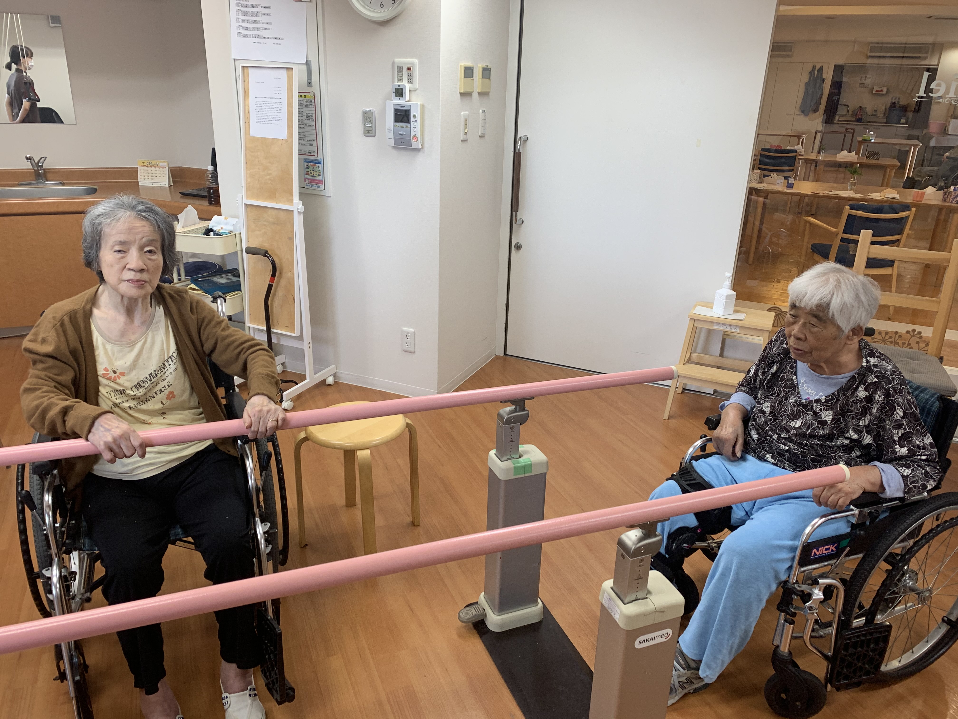 N様のリハビリの時に一緒だったI様に「一緒にやろう!!!!」と声をかけて下さりI様も「お願いします!!!!」と元気に答えて下さり二人で頑張ってくださいしました。