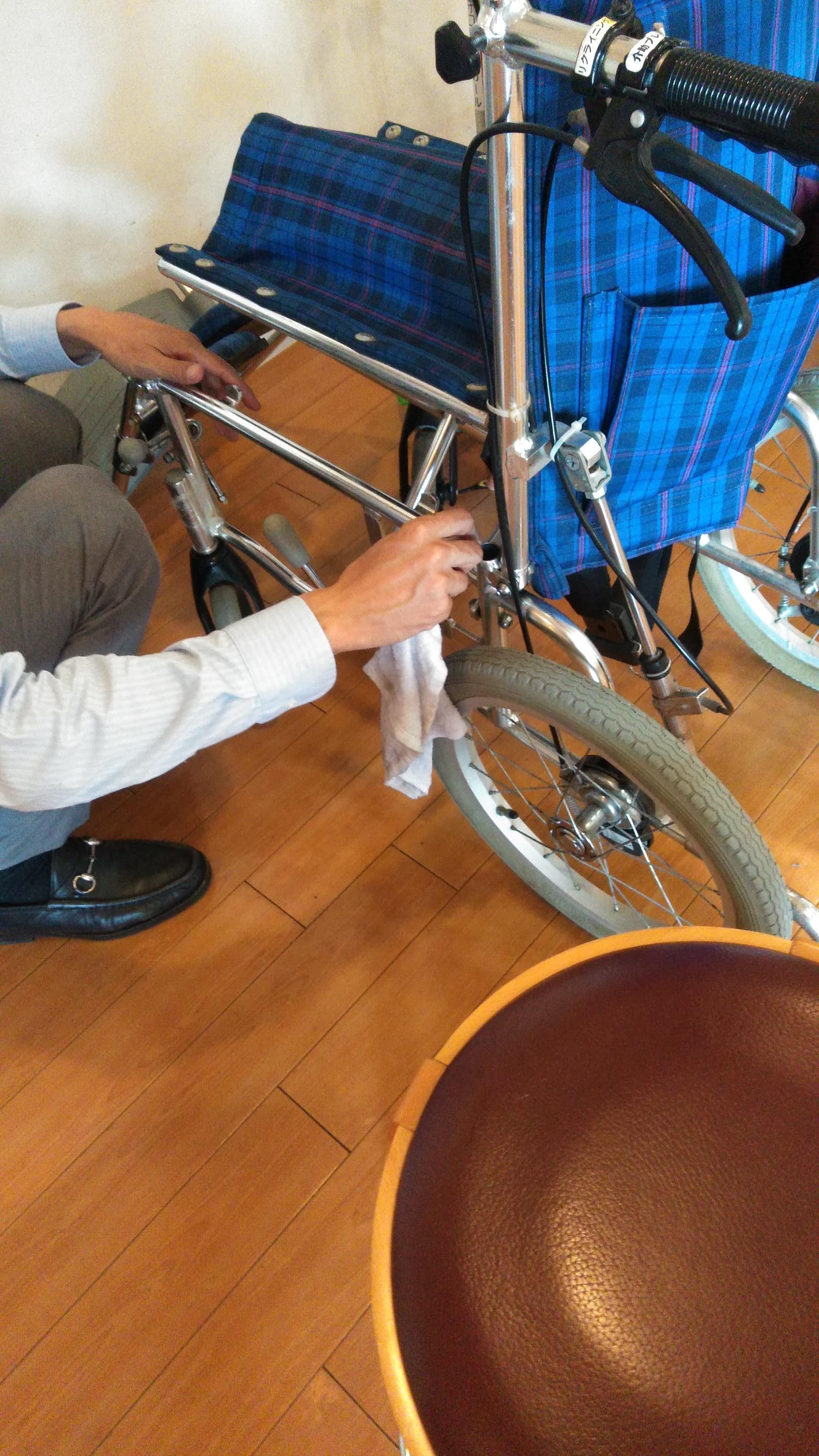 日頃から大活躍の車椅子、定期的にメンテナンスを兼ねて