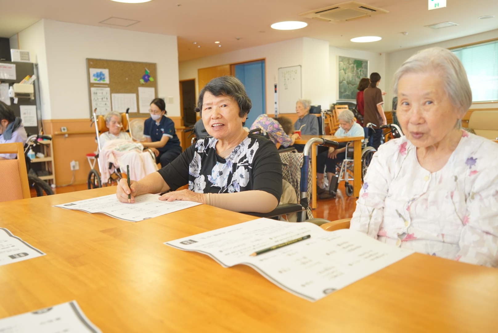 午後からは、入居者様のフロアでシーツ交換、清掃、レクリエーションを行いました。入居者様にも礼儀正しく挨拶やお話が出来ているとスタッフから大絶賛\(◎o◎)/!「私も見ならわなければ…」とも。