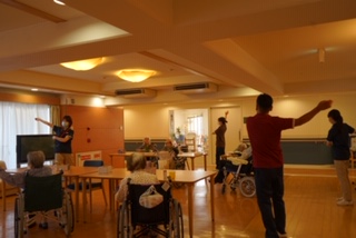 今日の入居者様ラジオ体操2階バージョン