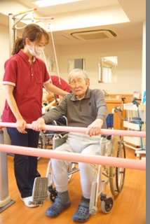 立位訓練を機能訓練室で行いました。