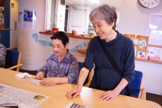 今日の入居者様 紙風船作りバージョン
