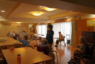彼女の指揮のもと、入居者様が一生懸命体を動かしてくださっていて