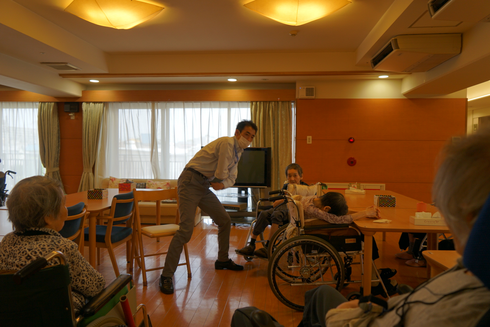 職員が入居者様と一緒に楽しみながら