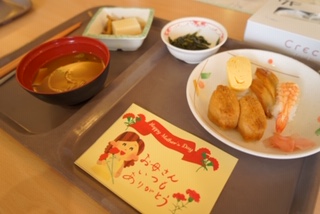 お昼ごはんは、お寿司の盛り合わせ・赤だし
