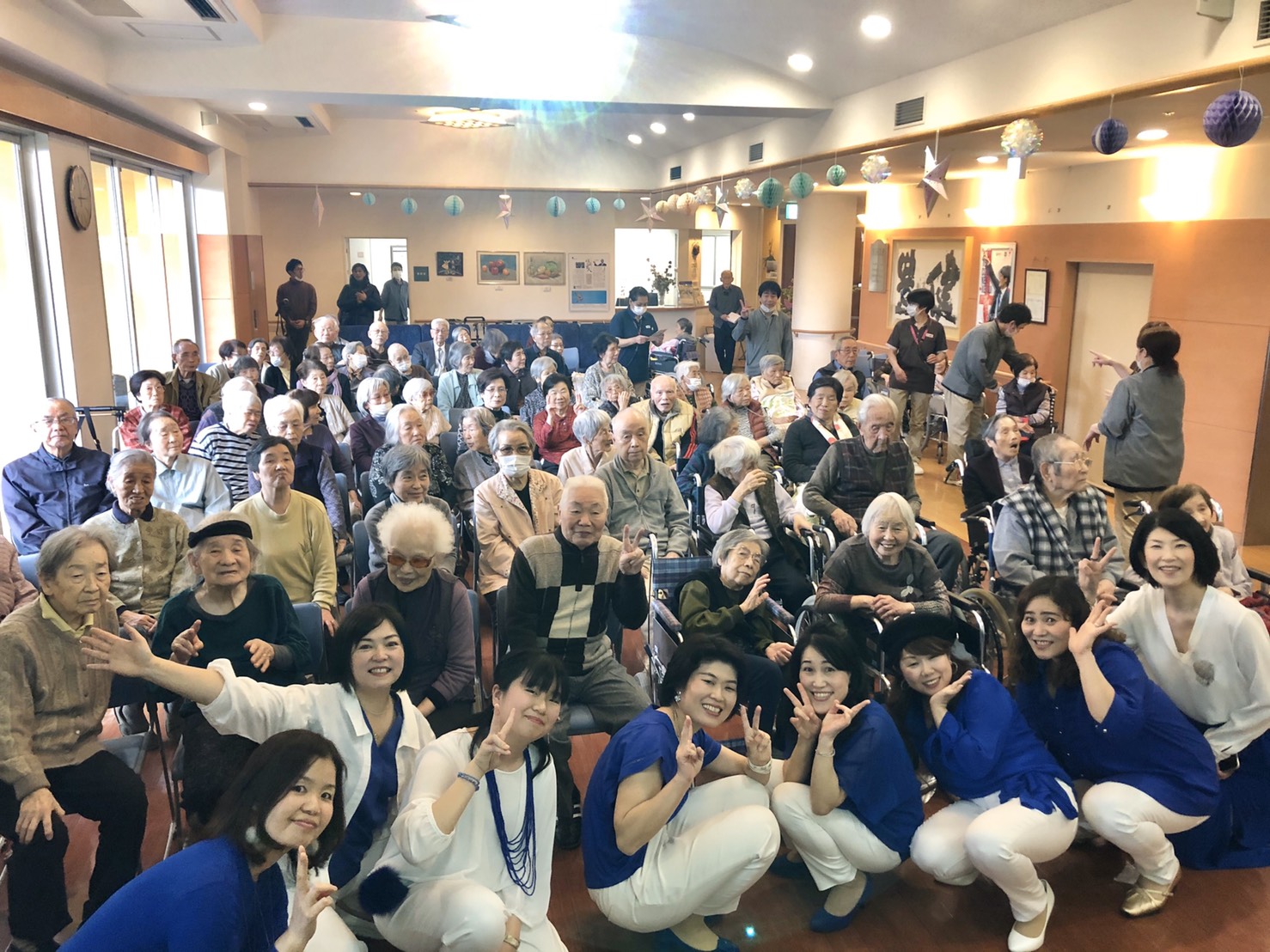 そして、スタッフの方に引き連れられ、隣の棟へそこは老人ホームで、沢山の方々が待ち構えて下さってて、いきなりの挨拶 笑そして、うっかり 笑ピアノあるじゃん上を向いて歩こうは、一緒に歌えて最高 笑離したくはないの前に、みなさん、恋してますかーのMCに、ニコニコだったのが、素敵だった最後は、enjoy‼️YEAH‼️で、ひとつに繋がってきたよ 笑〜繋〜
