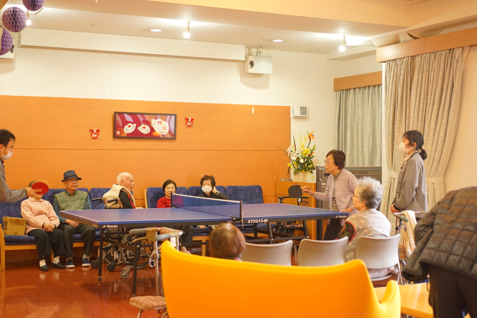 施設でも、活気に道溢れた卓球が